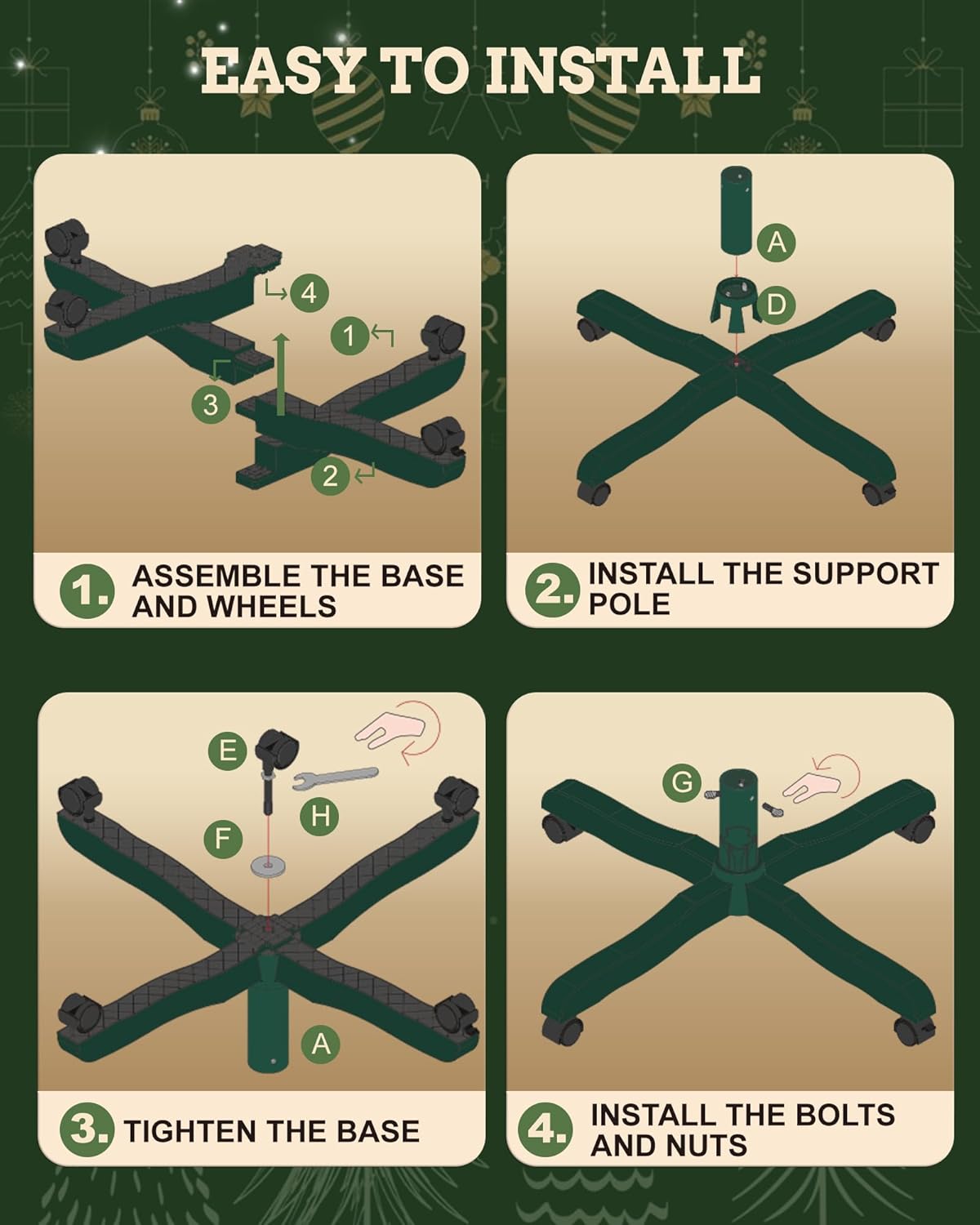 • FROHE WEIHNACHTEN - Der Weihnachtsbaumständer bietet stabilen Halt für den eleganten künstlichen Baum und sorgt dafür, dass er aufrecht und sicher steht. Erwachsene und Kinder kommen zusammen, um den Baum mit verschiedenen Ornamenten und Lichtern zu