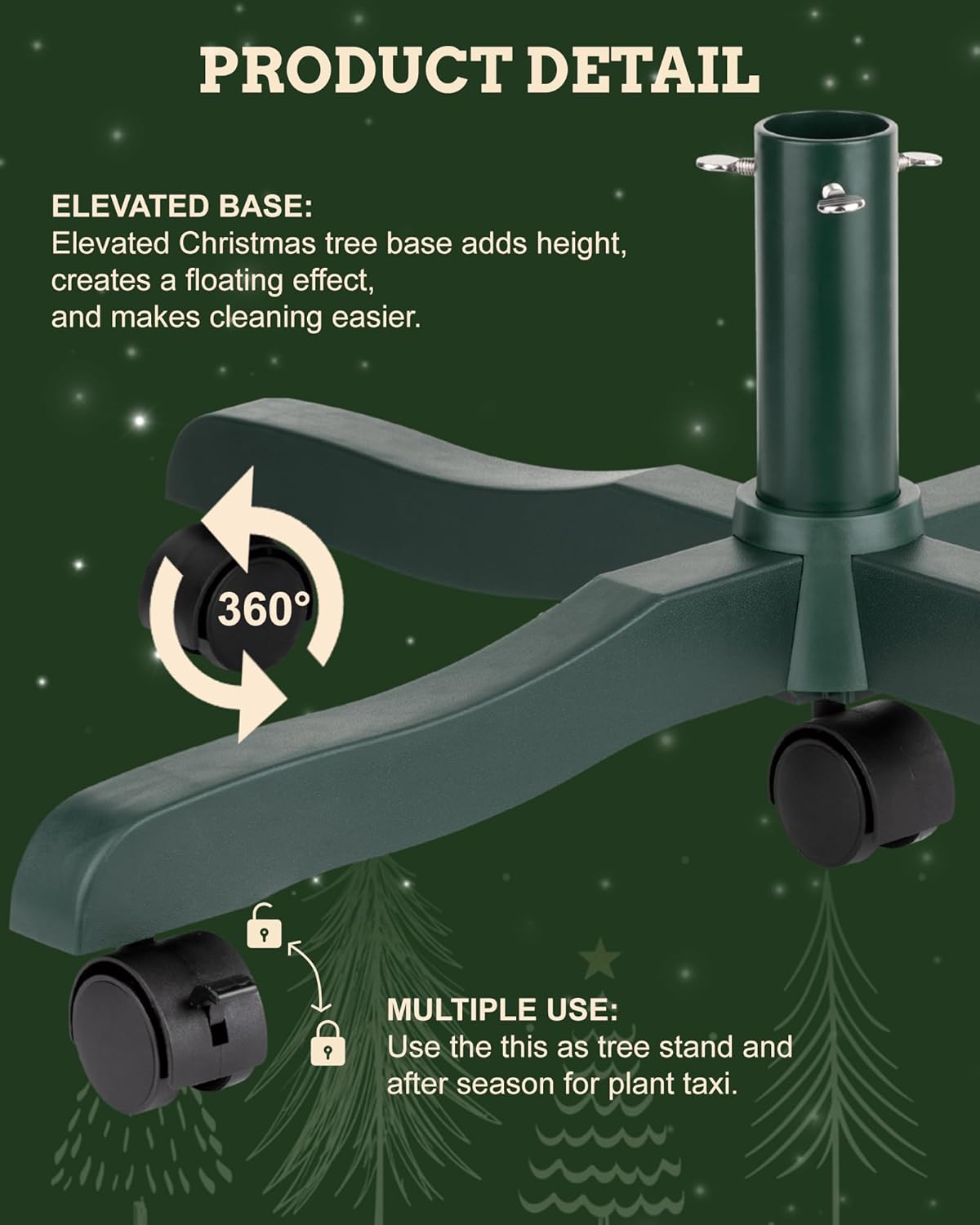• Mobil und Stabil - Der Christbaumständer mit 5 Rollen lässt sich leicht in jede Ecke des Wohnzimmers, Essbereichs oder Ausstellungsraums bewegen. Jede Rolle hat eine Feststellbremse, damit der Baum sicher an Ort und Stelle bleibt. Die kratzfesten
