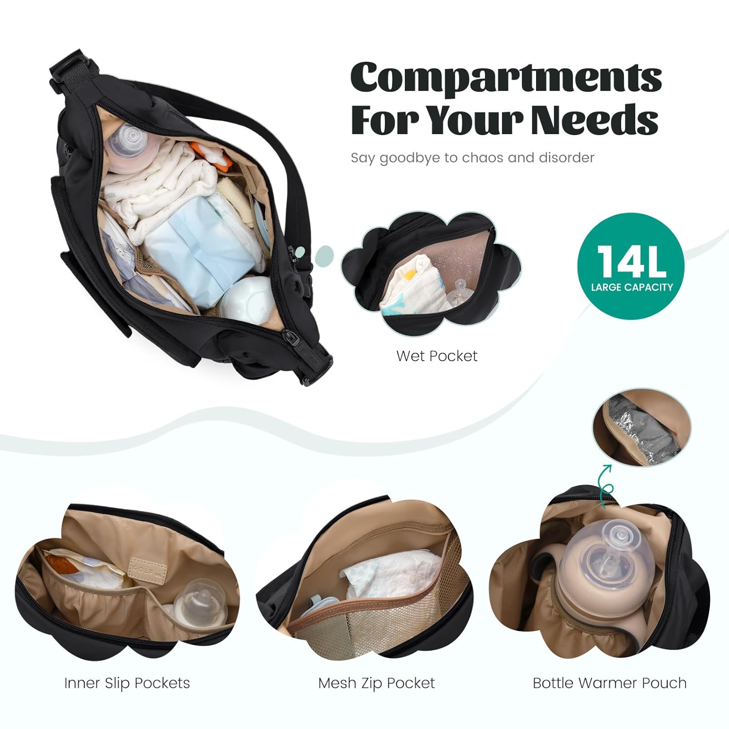 - Grössenbeschreibung: 37 x 24 x 12,5 cm, mit 14 l Fassungsvermögen, unsere Umhängetasche verfügt über 12 sorgfältig gestaltete Taschen, wodurch sie praktisch für jede Reise mit Ihrem Baby ist