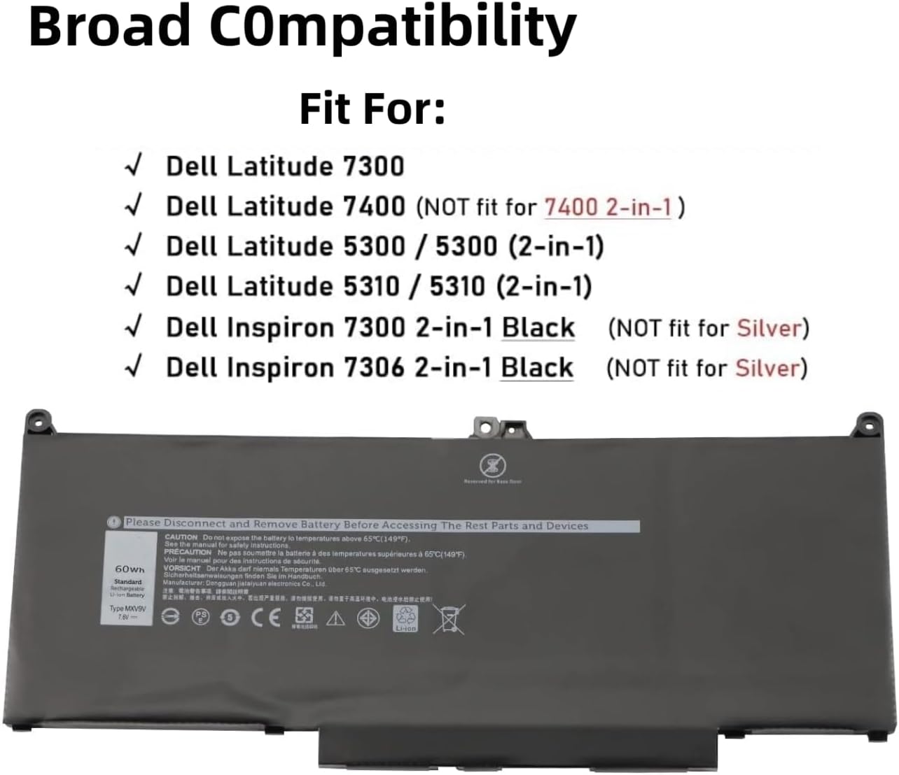 - 【Compatible with Laptop Models】for Dell Latitude 5300 E5300, Latitude 5300 2-in-1, Latitude 5310 E5310, Latitude 5310 2-in-1, Latitude 7300 E7300, Latitude 7400 E7400, Inspiron 7300 7306 2-in-1 Black Series( Not fit for Silver Series) ,Dell P96G