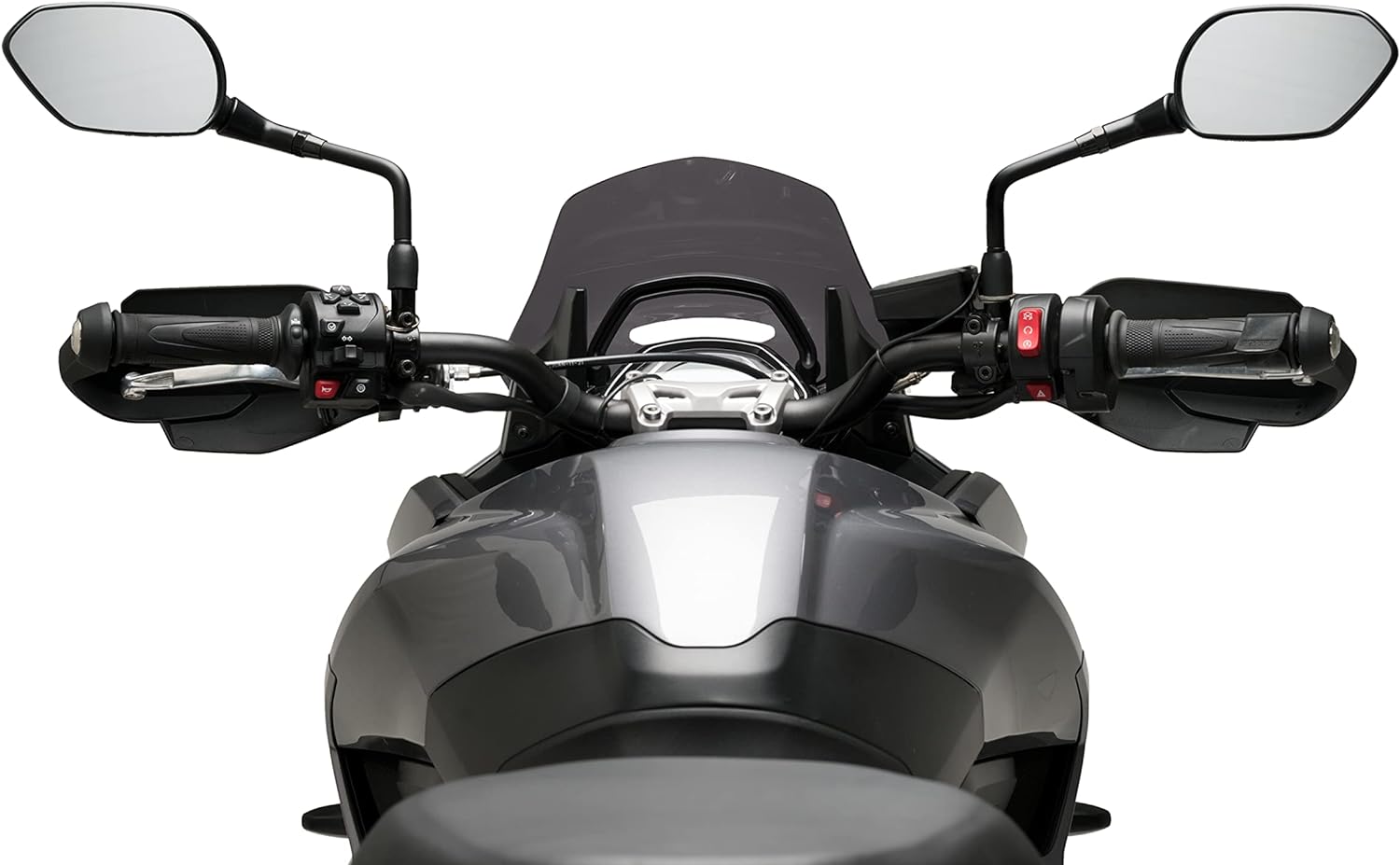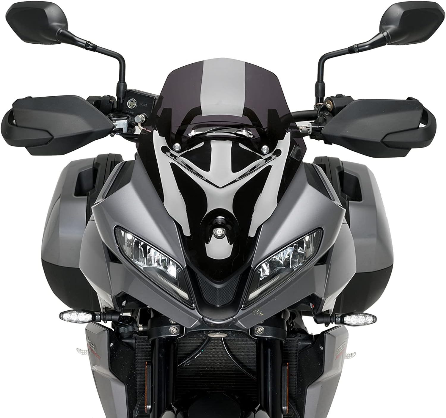 - Seine kompakten Abmessungen, die geringfügig kleiner als die originale Scheibe sind, bieten dem Fahrer einen bemerkenswerten Schutz und ein Gefühl des Komforts sowie eine sportliche Ästhetik, ohne das Sichtfeld des Fahrers zu beeinträchtigen