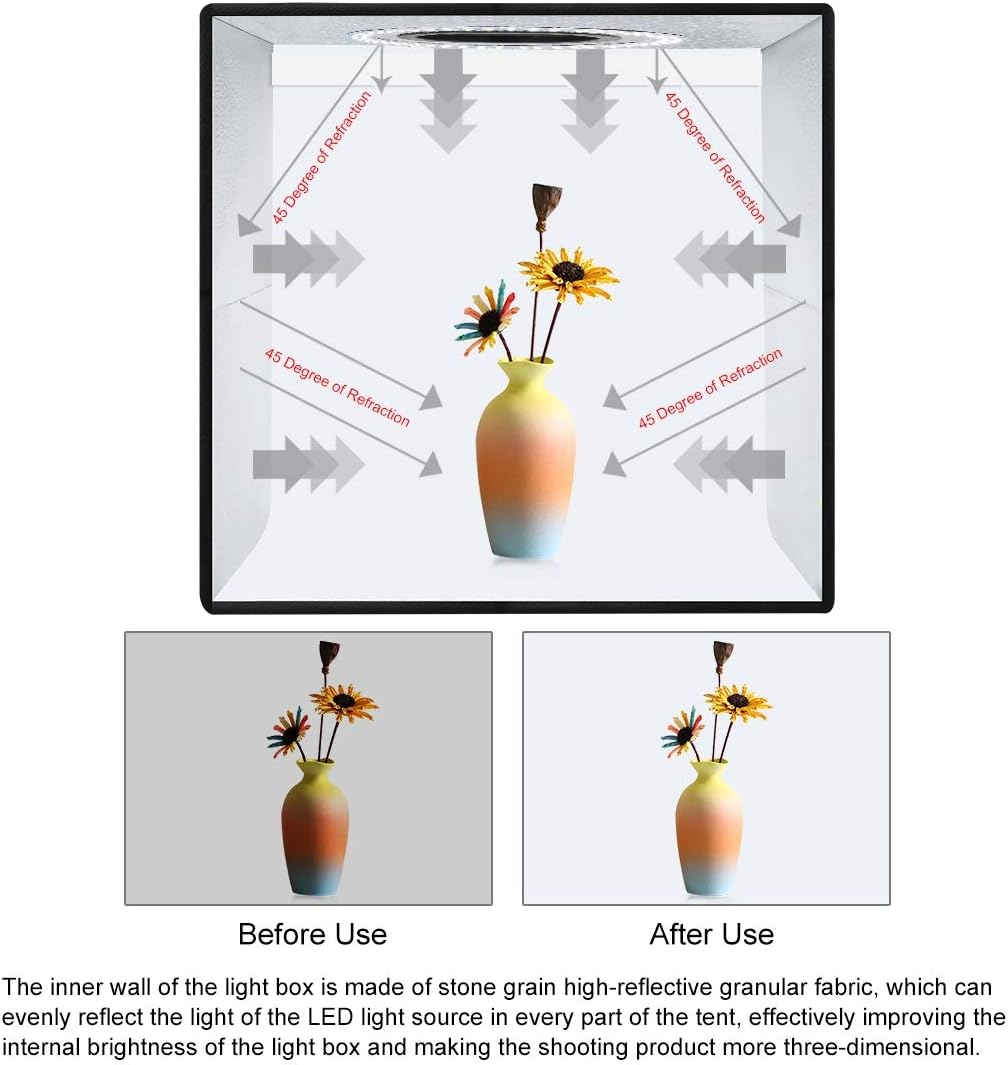 - ✿【6 Farben von Hintergrund】Das Zelt für Fotoshooting hat 6 Farben von Hintergrund, aus PVC, faltenfrei, staubdicht, wasserdicht und nicht schmutzig, so dass Ihre Produkte verschiedene Bildeffekte präsentieren können.