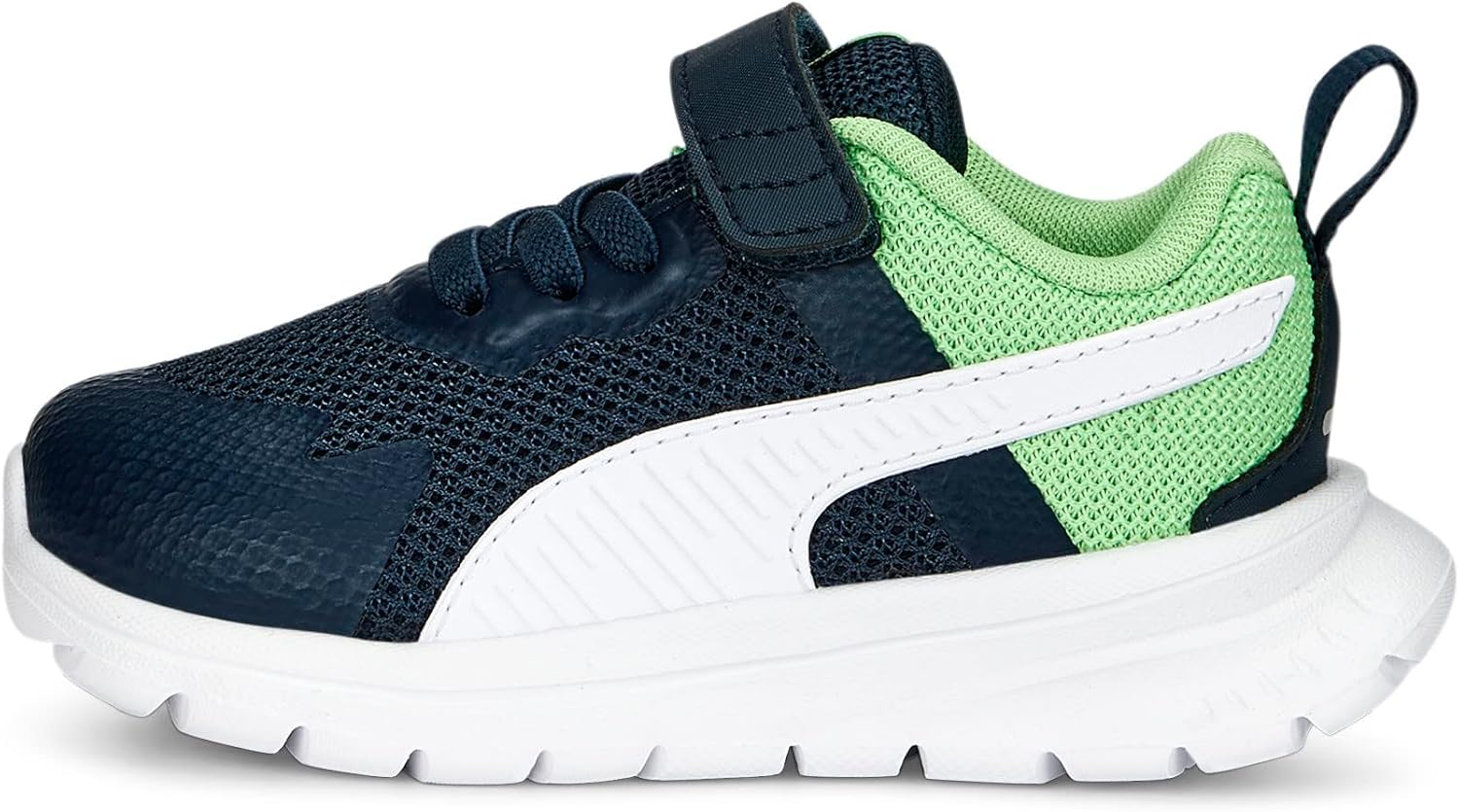 PRODUKTBESCHREIBUNGEN PRODUCT STORY Entwickelt für wachsende Füsse, sind die Evolve Run Mesh Sneakers ideal für kleine Mover und Shaker. Dieser leichte Sneaker verfügt über funky Designelemente wie synthetische Overlays und geprägte Linien und ist damit der perfekte Einstieg in den mutigen sportlichen Stil. Der Klettverschluss macht sie im Handumdrehen einsatzbereit, während die weiche EVA-Zwischensohle mit die SOFTFOAM+ Einlegesohle für überlegene Dämpfung bei jedem Schritt der kleinen Abenteurer. FEATURES + VORTEILE * CMEVA: Das formgepresste EVA von PUMA für maximale Performance bei minimalem Gewicht * SOFTFOAM+: Step-in-Komfort-Einlegesohle, die dank der extradicken Ferse für eine weiche Dämpfung sorgt DETAILS * Niedriger Schaft * Obermaterial aus Mesh mit Synthetik-Overlays * Hotmelt-Overlays im Zehen- und Ösenbereich * Gewebtes Gurtband an Zunge und Ferse * Mesh-Futter * Klettverschluss * Gepolsterte Zwischensohle für höchsten Tragekomfort * Synthetischer PUMA Formstrip mit geprägten Linien an der Innen- und Aussenseite * PUMA Cat Logo auf Schuhzunge und Fersen-Tag * PUMA Babys: Für Babys und Kleinkinder zwischen 0 und 4 Jahren