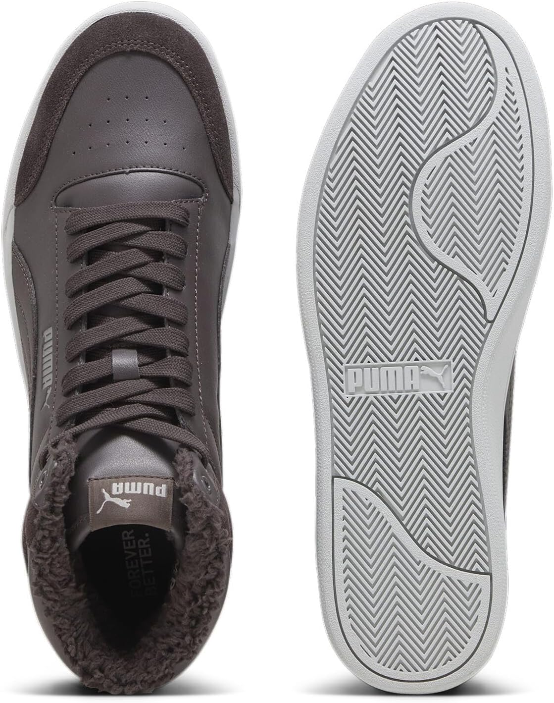 PRODUKTBESCHREIBUNGEN PRODUCTSTORY Verändern Sie Ihre Wintergarderobe mit einem frischen Aufguss von Stil. Der Shuffle Mid Fur ist unsere neueste Interpretation des Basketball-Klassikers der 80er Jahre. Wir haben die klassischen Farben und Details des Originals beibehalten, aber zusätzlich eine Polsterung am Kragen und ein weiches Fleecefutter für zusätzliche Wärme während der kälteren Monate. Merkmale und Vorteile: * Softfoam+: Komfort-Einlegesohle für weiche Polsterung dank extra dicker Ferse Details: * Gepolsterter Kragen * Zwischensohle aus Gummi. * Aussensohle aus Gummi. * PUMA Formstrip an den seitlichen und medialen Seiten * PUMA No. 2 Logo an der Seite Mehr