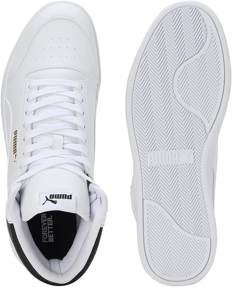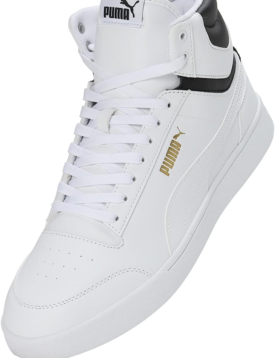PRODUKTBESCHREIBUNGEN PRODUCT STORY Die Shuffle Mid Sneakers sind eine moderne Neuinterpretation eines Basketball-Styles aus den 80er-Jahren und sehen auf dem Platz klassisch aus. Mit klaren Linien, einem gepolsterten Schuhkragen, einem auffälligen Logo und einer sportlichen Silhouette sorgen diese High-Tops für zeitlose und trendigen Look. FEATURES + VORTEILE * SoftFoam+: Die ultraweiche Innensohle von PUMA erleichtert schnelles Hineinschlüpfen, bietet langanhaltenden Komfort und dämpft jeden Schritt perfekt ab. DETAILS * Basketball-Silhouette im 80er-Jahre-Stil mit gepolstertem Schuhkragen für Komfort und Halt * Obermaterial aus weichem Kunstleder mit Suede an der Fersenspitze * Zwischensohle und Aussensohle aus Gummi * Schnürung für genaue Passform * PUMA No. 1 Logo an der Schuhzunge * PUMA No. 2 Logo auf dem Quartier * PUMA Formstrip an der Seite