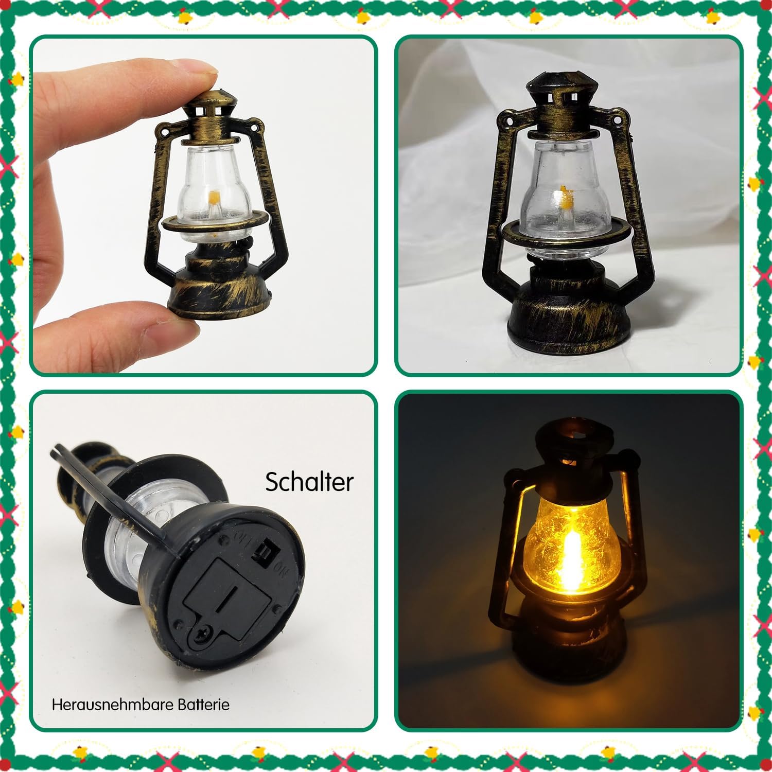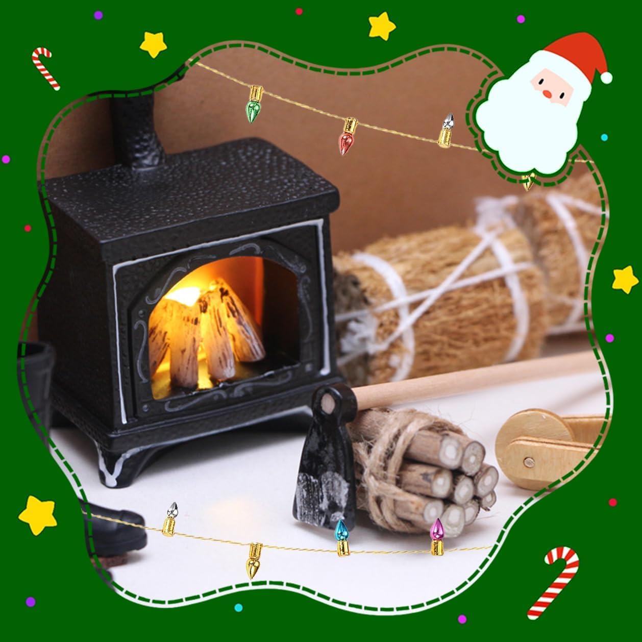 - 【Miniatur-Puppenhaus-Set】:Sie erhalten 1x glühende Miniatur-Feuerstelle (Es kann aufleuchten), 1x Petroleumlampe, 1x Heuhaufen, 1x Hacke, 1x Gummistiefel, 1x Schubkarre, 1x Besen, 1x Brennholz, 1x Miniatur-Lichterketten, 1x Heuhaufen, 1x