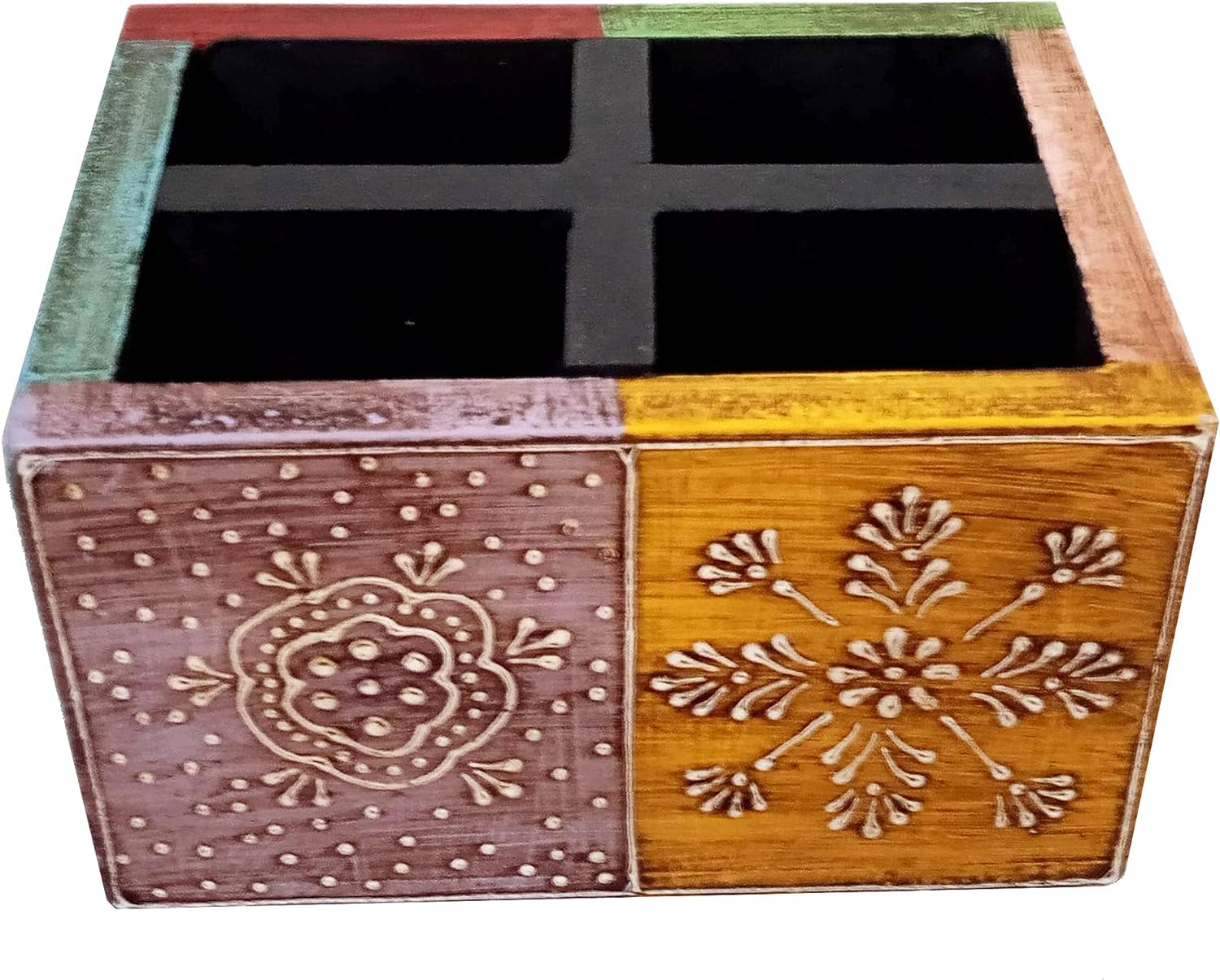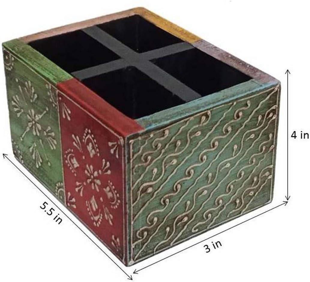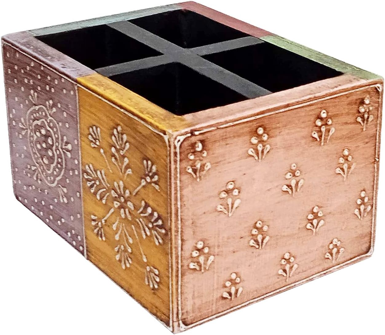 Purpledip Schreibtisch-Organizer aus Holz für Stifte, Handy oder Visitenkarten, handbemalt
