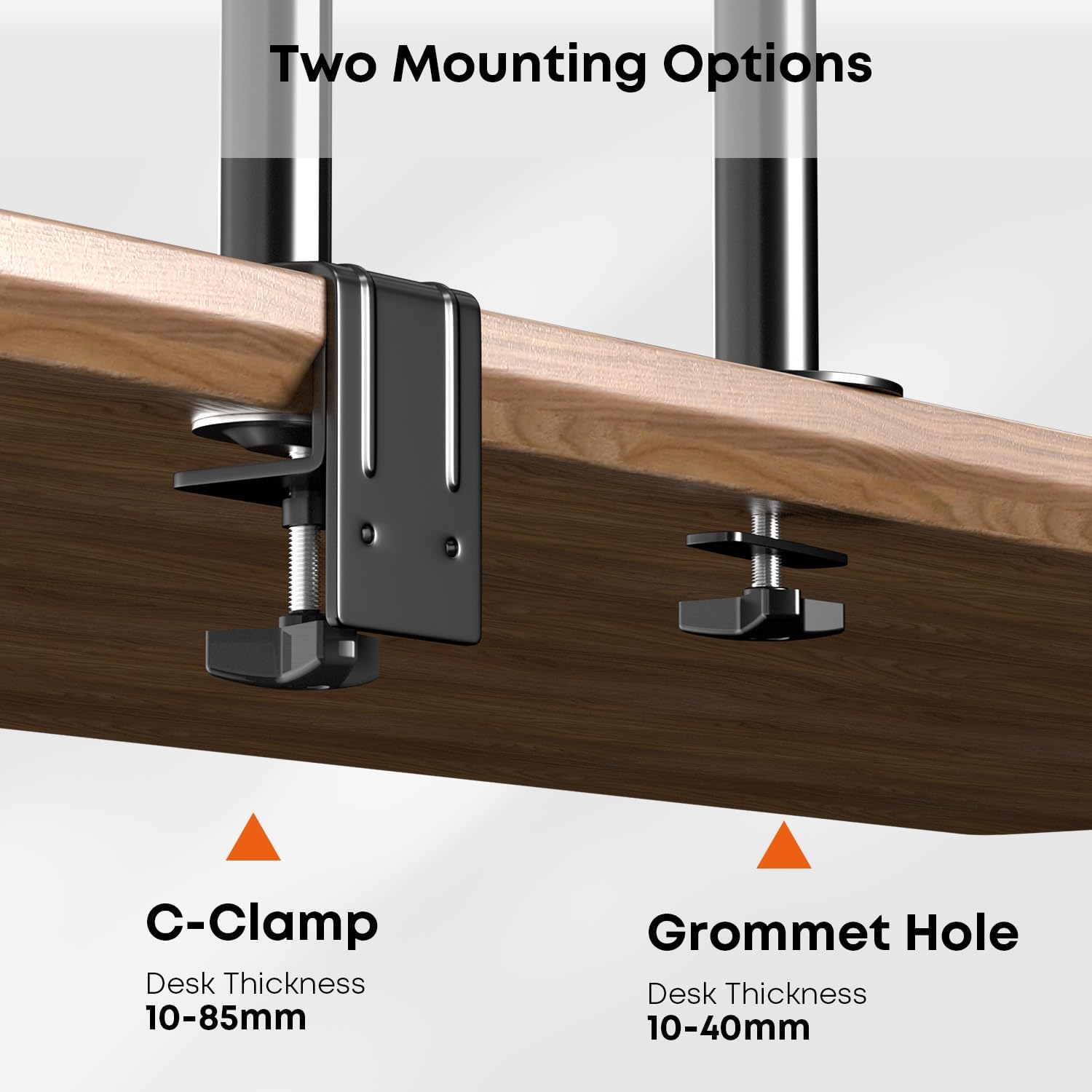 • ZWEI INSTALLATIONSMÖGLICHKEITEN - Je nach Bedarf können Sie zwischen Klemmen- und Tüllenmontage wählen (C-Klemme eignet sich für eine Tischplattenstärke von 10-85 mm; Tüllenbasis eignet sich für eine Tischplattenstärke von 10-40 mm, und der