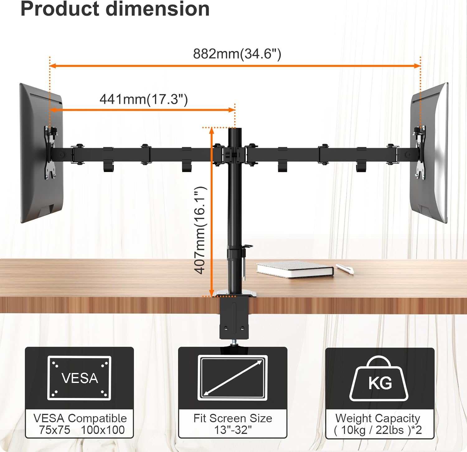 - Passend für die meisten 13-32 Zoll Monitore: Monitor Tischhalterung 2 Monitor hält bis zu 10kg pro Arm und passt auf die meisten flachen, gebogenen Computerbildschirme mit VESA 75x75mm oder 100x100mm. Sein innovatives abnehmbares VESA Plate Design
