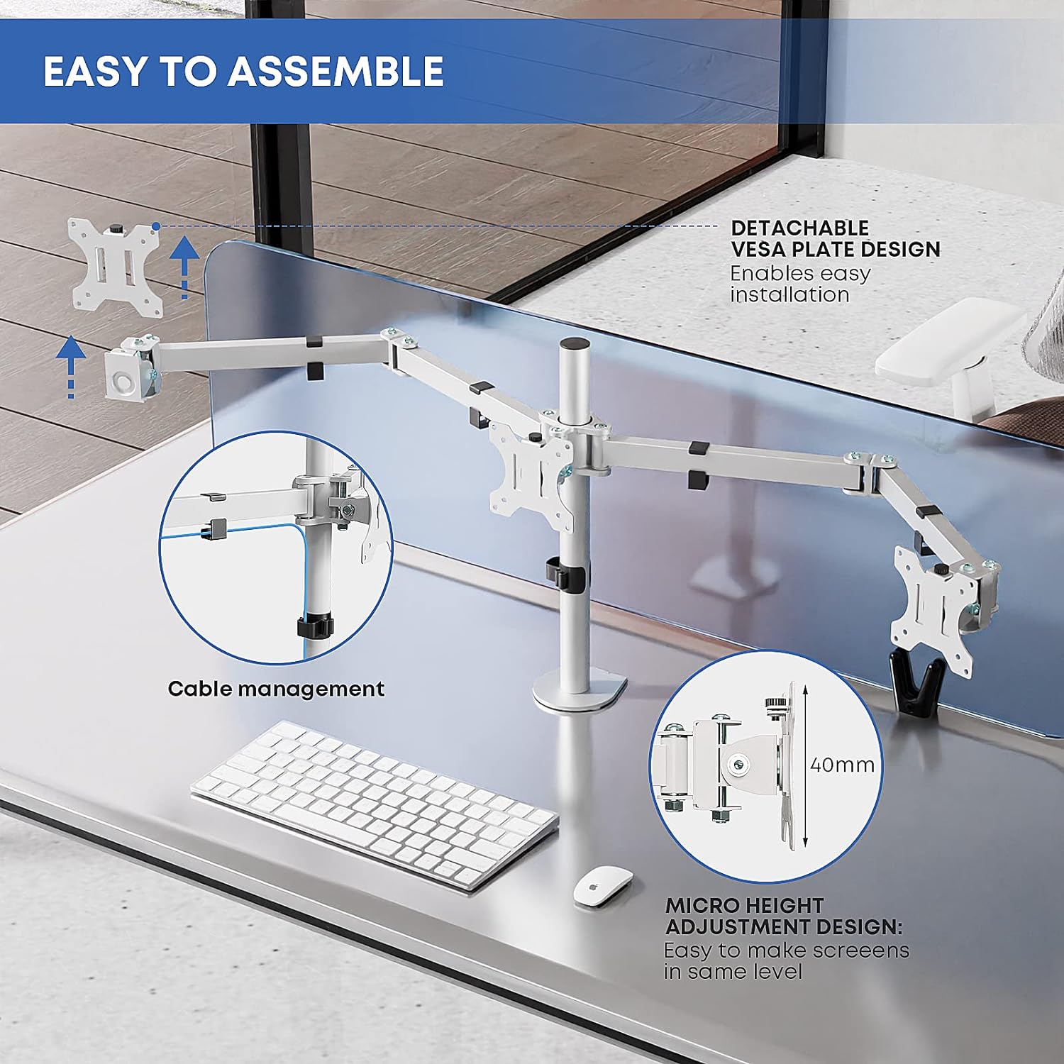 - ✅ Montieren Sie zwei Monitore nebeneinander über dem Schreibtisch und verbessern Sie Ihre Produktivität, indem Sie die Notwendigkeit eines Bildschirmwechsels für verschiedene Anwendungen vermeiden. Abhängig vom Benutzer und der Schreibtischhöhe,