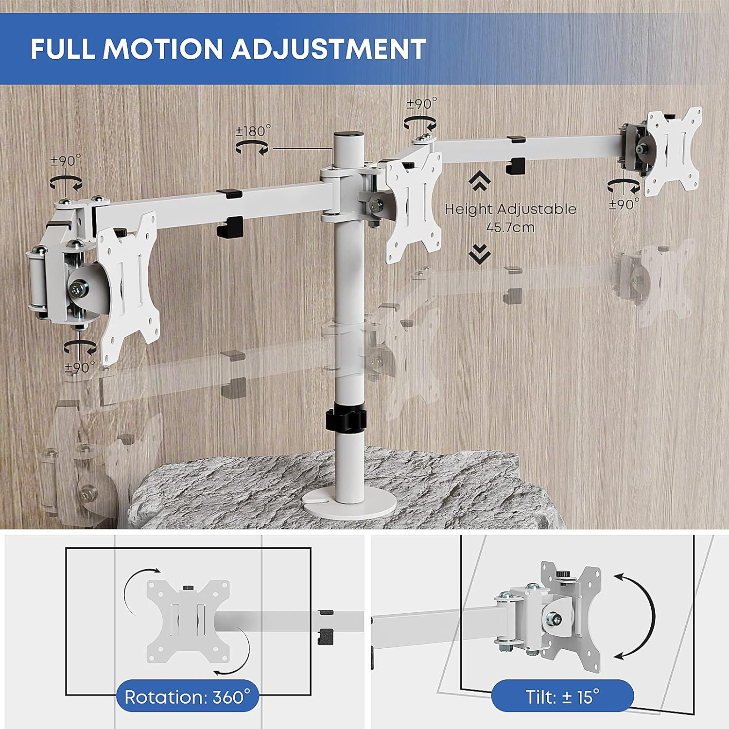 - ✅ Beide Arme sind höhenverstellbar auf dem vertikalen Pol. Der Pol misst 45 cm. Jeder Bildschirm kann 90 Grad nach oben oder unten gekippt werden, um 360 Grad geschwenkt und um 360 Grad gedreht werden. Das Drehen der Monitorhalter erlaubt eine Quer-