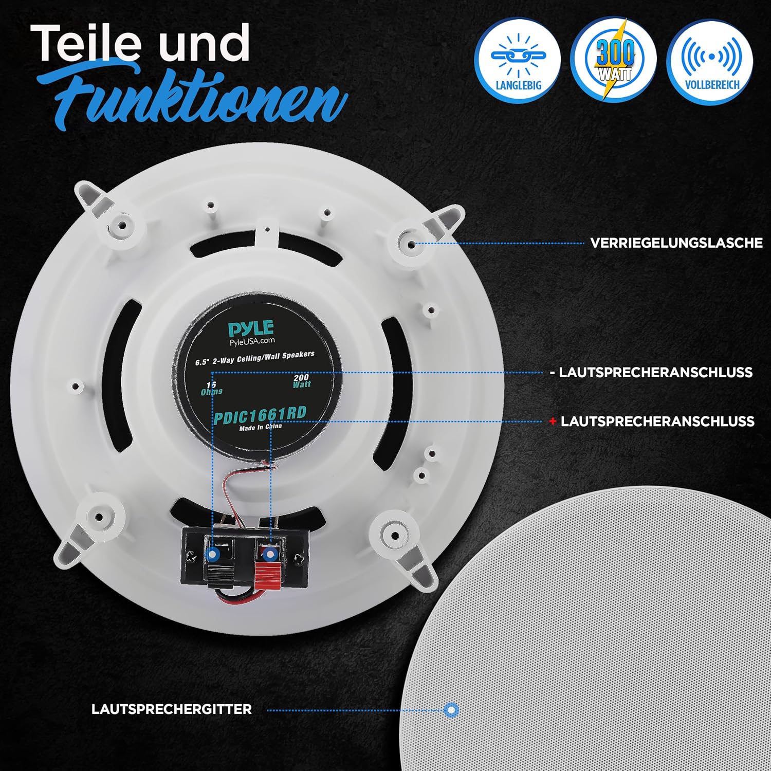 - NAHTLOSE INTEGRATION – Perfekt für bestehende Heimkinosysteme liefert dieses Pyle Deckeneinbaulautsprecher unglaublichen Stereo-Sound in jeden Raum Ihres Hauses, mit Lautsprechern, die kaum sichtbar sind, ohne Platz auf dem Boden oder Regal zu