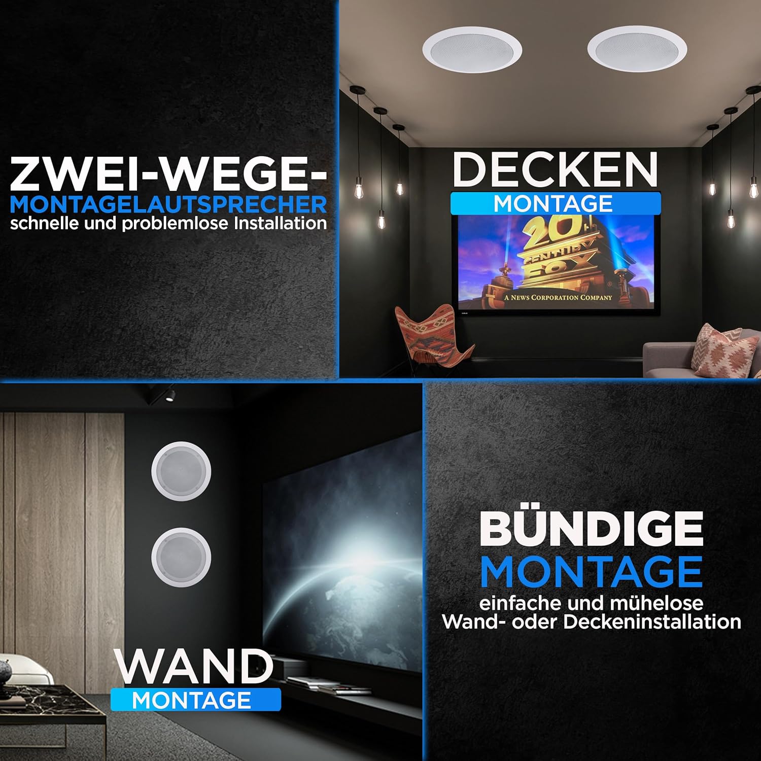 - BÜNDIGES MONTAGEDESIGN – Kompaktes bündiges Montagedesign für eine einfache Installation in Wand / Decke oder vorgefertigte Lautsprecherausschnitte, für den Heimgebrauch, Büros, professionelle oder massgeschneiderte Audioanwendungen auf jeder