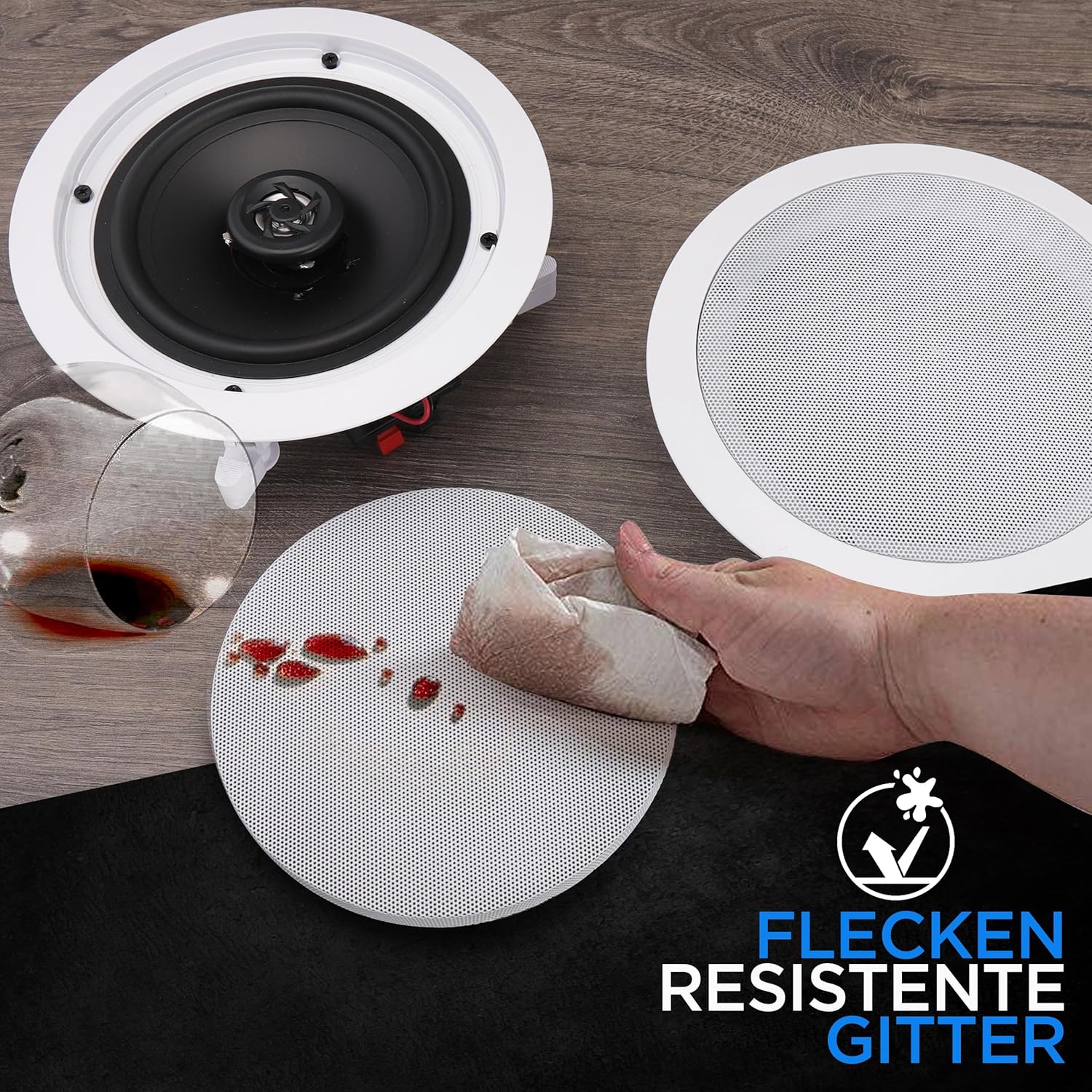 - LAUTSPRECHERGITTER – Eingebaute, runde, fleckenresistente Lautsprechergitter. Passen Sie die Lautsprecher an vorhandene bündig montierte Designs in Ihrem Zuhause oder Büro an, für ein sauberes Aussehen und erzielen Sie eine breite Klangleistung ohne