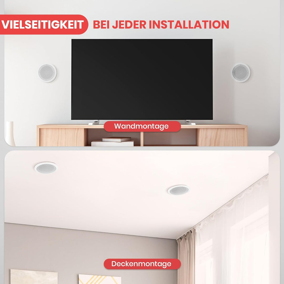 - WAND- / DECKENMONTAGE: Das Set aus 2 montierbaren 6,5-Zoll-Deckenlautsprechern besteht aus umweltfreundlichem ABS- und Urethanfolien-Laminat. Mit bündigem Design zur Montage an Wänden oder Decken. Perfekt für kundenspezifische Installationen