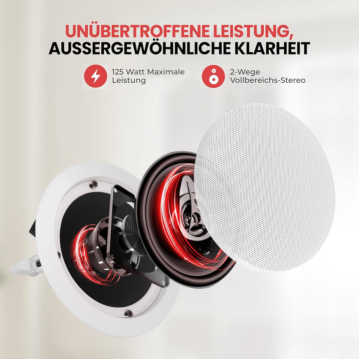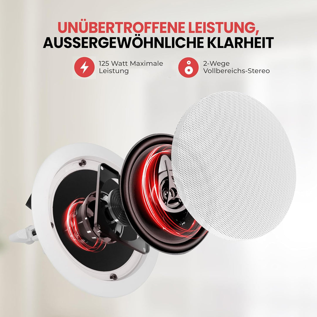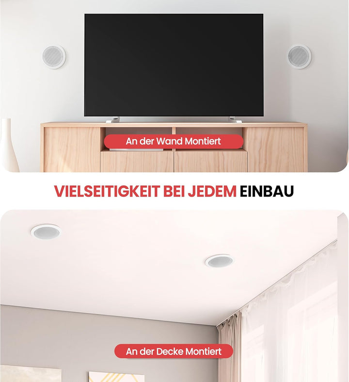- 2-WEGE-MONTAGE-LAUTSPRECHER: Das Paar 6,5-Zoll-Stereolautsprecher kann auf zwei Arten installiert werden: Unterputz- oder Deckeneinbau. Es verfügt über praktische Lautsprecheranschlüsse, die eine schnelle und problemlose Verbindung mit