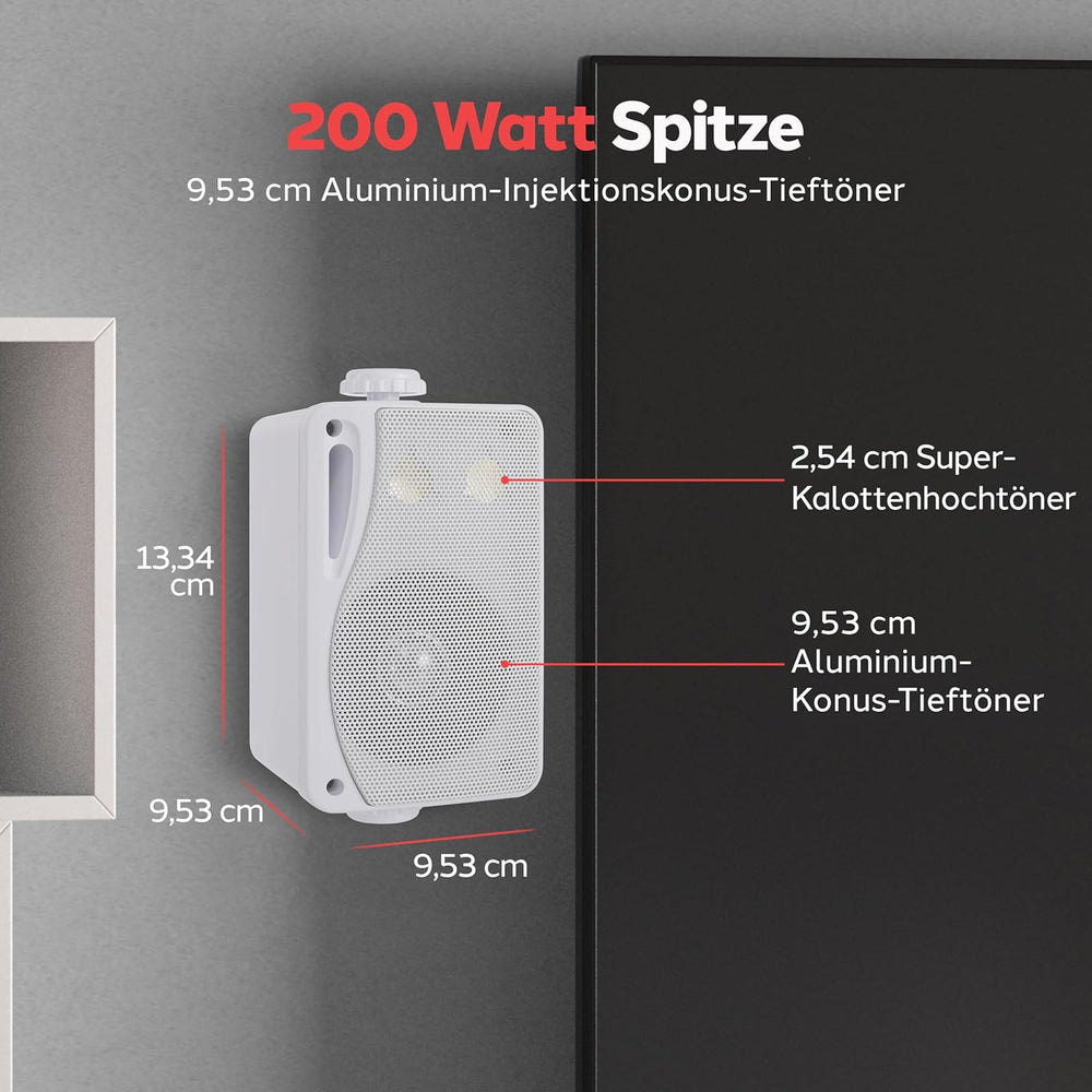 - 3,5-Zoll-Tieftöner mit Aluminium-Einspritzkegel – Bassreflexöffnung für zusätzliche Basswiedergabe – Frequenzgang 70–21 kHz;