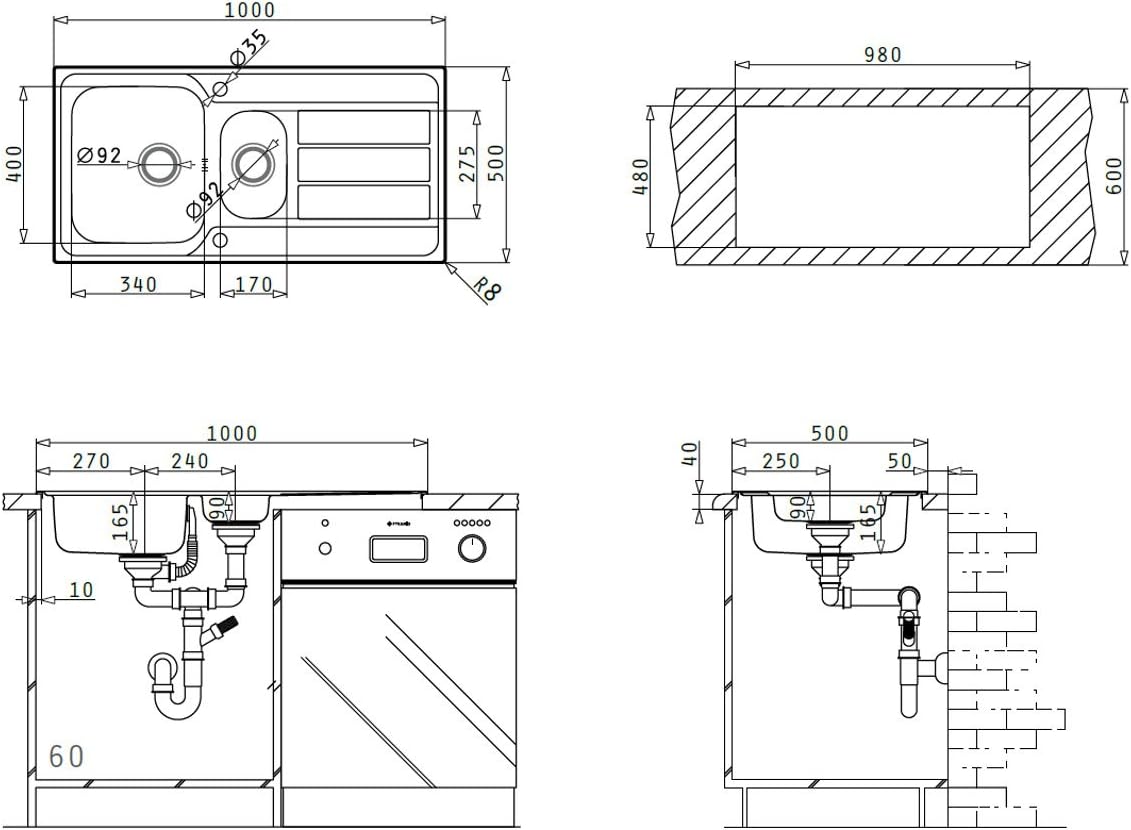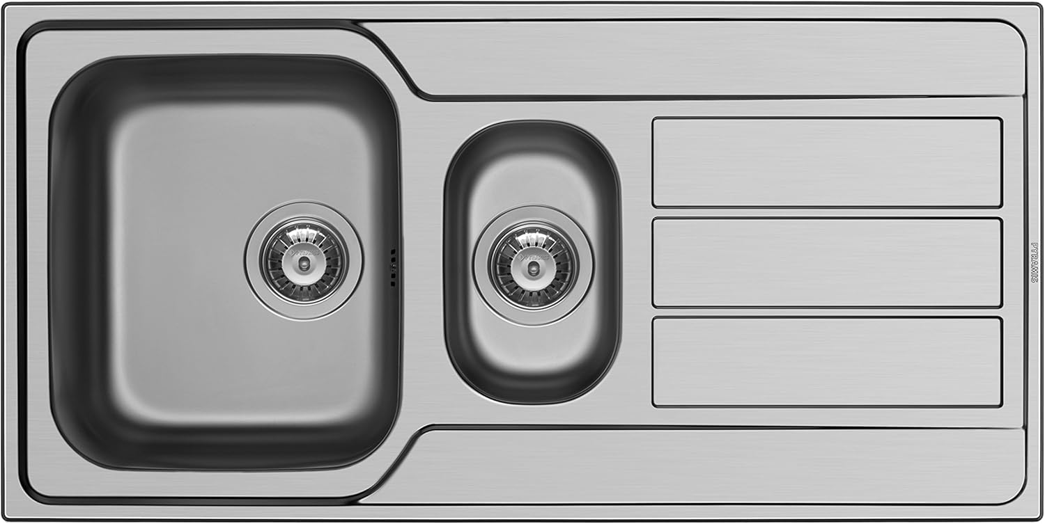 - Qualitäts-Spüle in zeitgemässem Design. Modern gestaltete Abtropffläche. Hochwertig verarbeitet. Extra Restebecken.