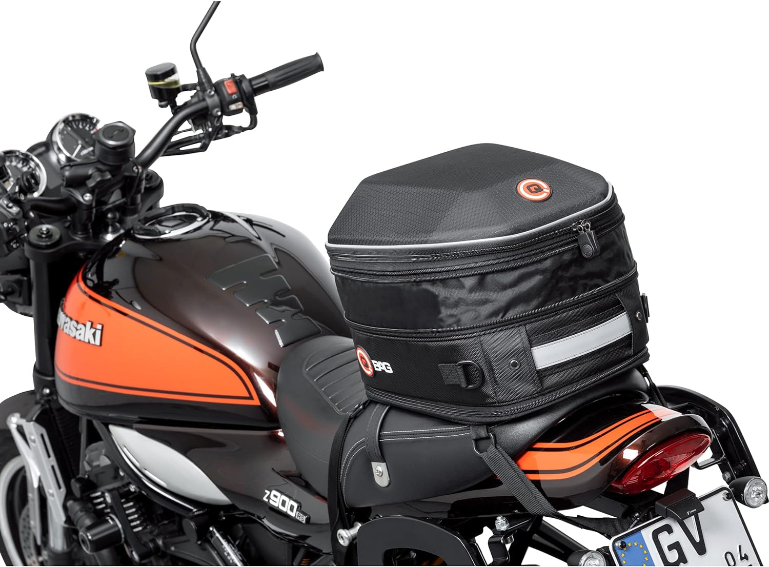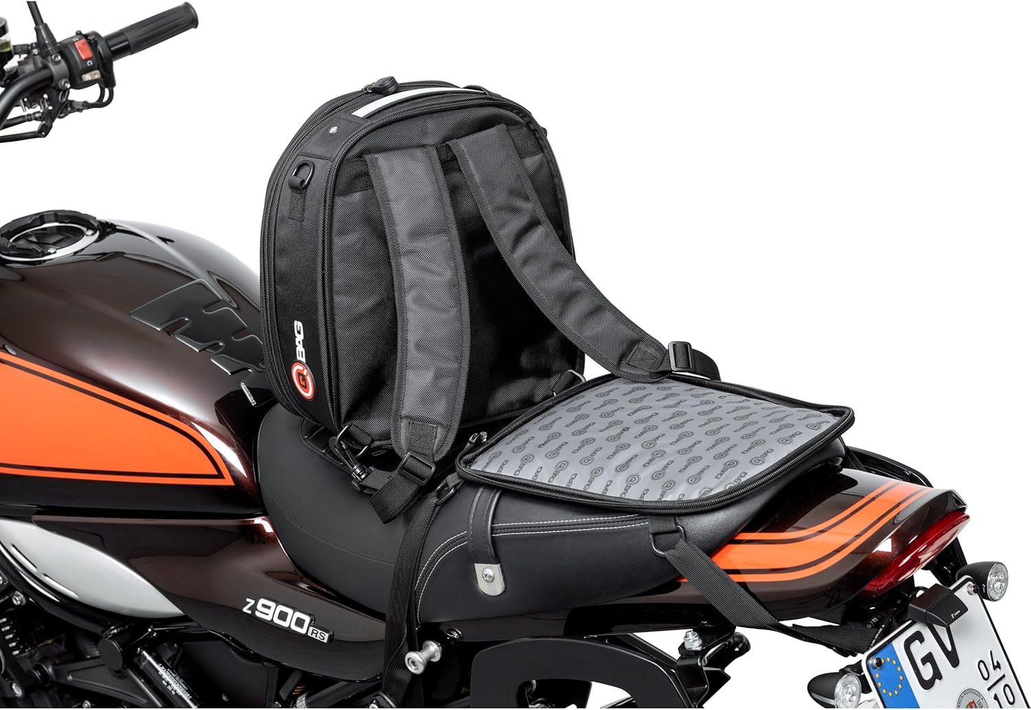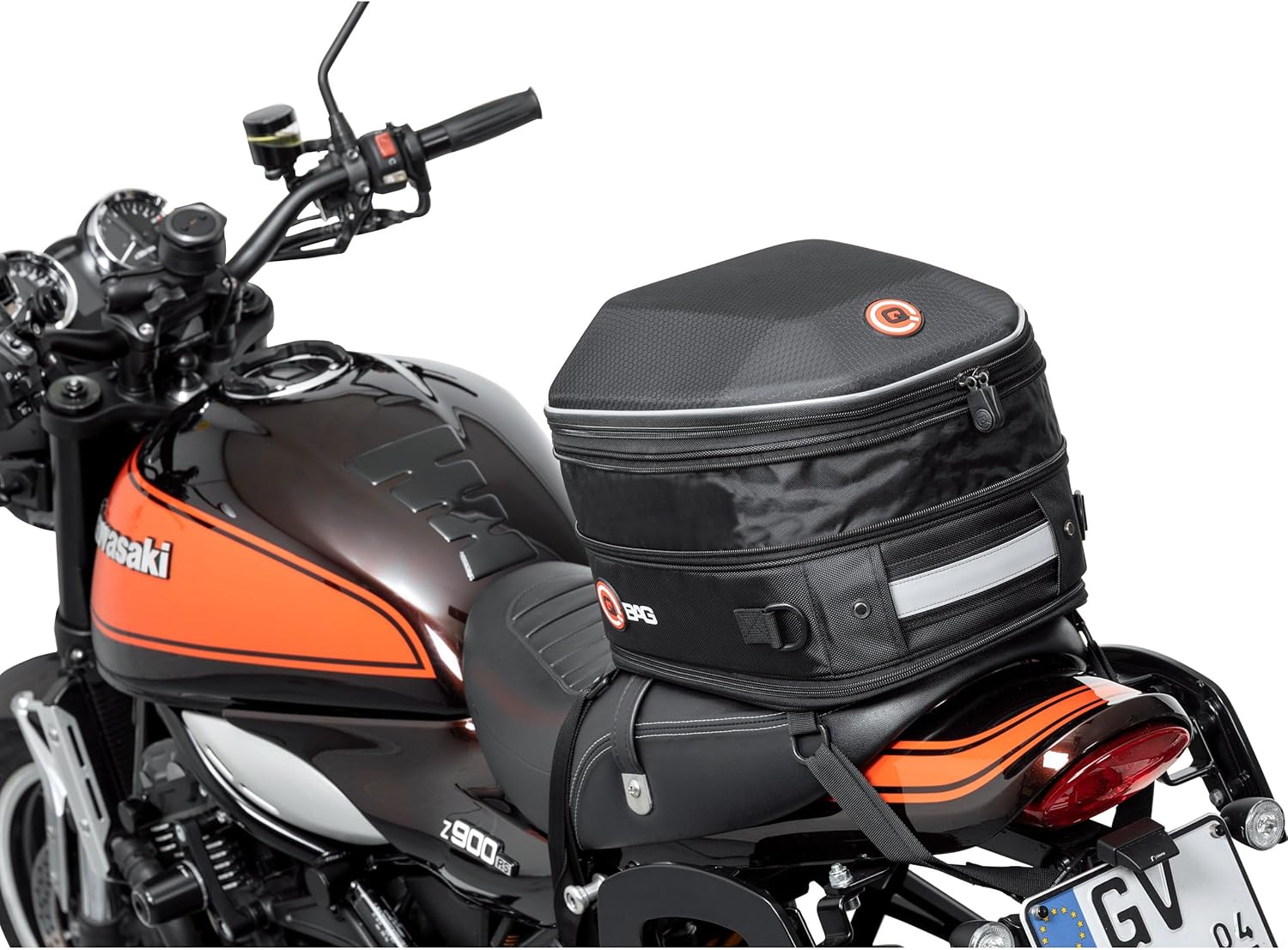 PRODUKTBESCHREIBUNGEN QBag Hecktasche ST08 abnehmbar 10-20 Liter Stauraum Höhenverstellbare, von der Grundplatte abnehmbare, Hecktasche für die Sitzbank oder den Gepäckträger mit Rucksackfunktion. Details: * Passend für nahezu alle Sitzbänke und Gepäckträger * Bei vielen Modellen auch als Riementankrucksack verwendbar * Die Tasche selber kann über einen Reissverschluss in Sekundenschnelle von der Grundplatte abgenommen werden * Bei einem Stopp muss so nicht die ganze Tasche abgenommen werden, es verbleibt nur die Grundplatte am Fahrzeug * Auch abseits des Motorrads dank integrierter Rucksackgurte einfach zu transportieren * Auch unbeladen Formstabil * Grosses, sehr gut nutzbares Hauptfach * Durch die Volumenerweiterung über einen Rundumreissverschluss in der Höhe einstellbar * Reissverschlusstasche für Kleinteile im Deckel * Die beiden Zipper des Reissverschlusses vom Hauptfach sind mit Druckknöpfen gegeneinander zu sichern und verhindern so ein ungewolltes Öffnen während der Fahrt * Aus robusten Polyester mit PVC Innenbeschichtung * Regenhaube für stärkeren Regen * Weiche Unterseite der Bodenplatte * Reflektierende Elemente (Keder, Tragegriff) für bessere Sichtbarkeit * Stabiler Tragegriff * Zwischen Bodenplatte und Tasche integrierte Rucksackgurte * Einfache Befestigung mit 4 Doppel-D Riemen - passend für fast alle Motorräder und Roller Masse (ca.): 10-20 Liter Stauraum (höhenvariabel) Länge x Breite x Höhe aussen: 335 x 285 x 195-305 mm Länge x Breite x Höhe innen: 325 x 280 x 180-300 mm Länge x Breite Deckeltasche innen: 115 x 180 mm Länge x Breite Tragegriff: 120 x 32 mm Länge maximal x Breite Rucksackgurte: je 1100 x 25-70 mm Länge maximal x Breite Befestigungsriemen: 800 x 25 mm Gewicht: 1090 g Optionen: * Schloss zur Sicherung der Ta