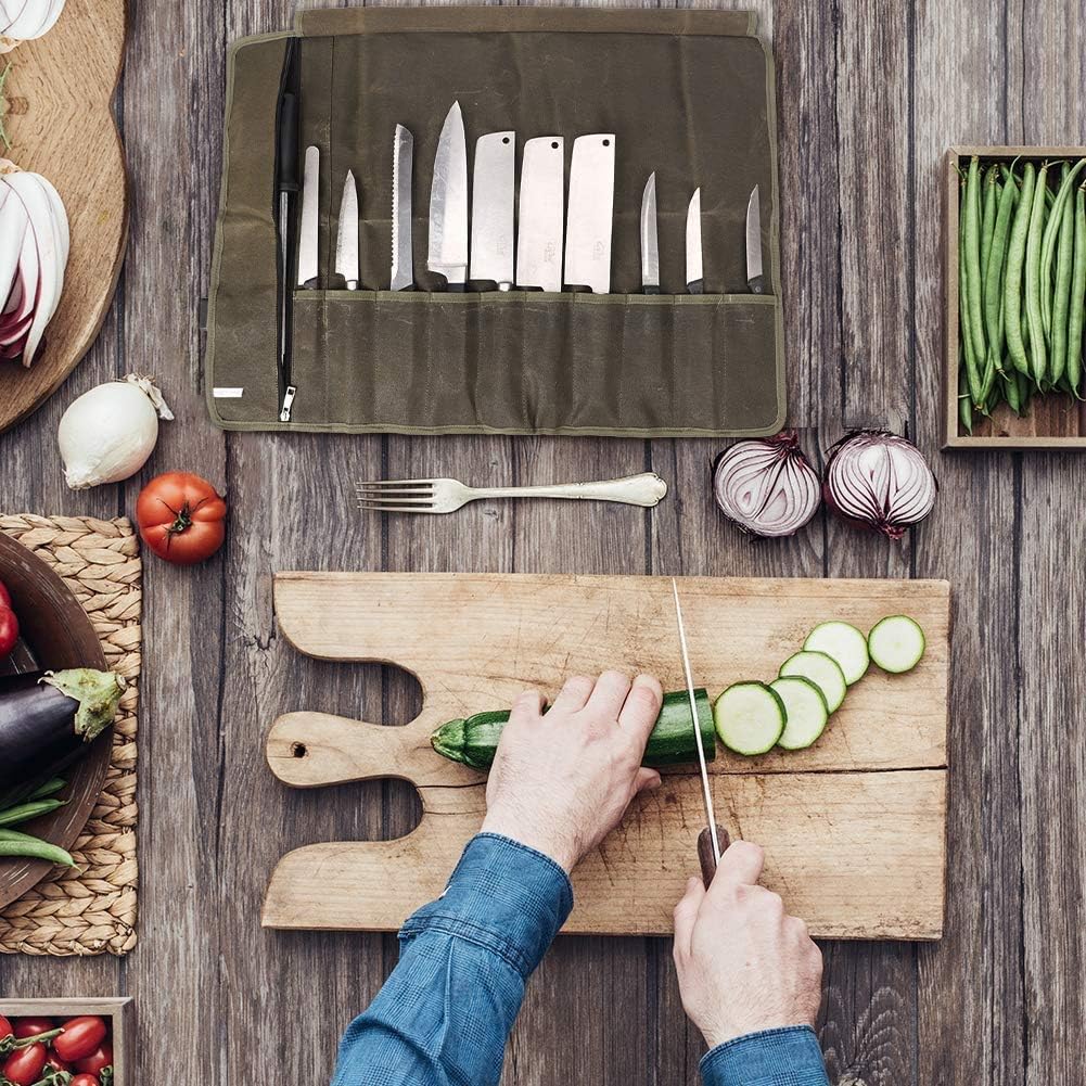 - Sicher: Leicht, langlebig und leicht zu reinigen. Stellen Sie sicher, dass Ihre Werkzeuge an Ort und Stelle gehalten werden, damit Ihre Messer nicht aus der Tasche rutschen oder herausreissen.