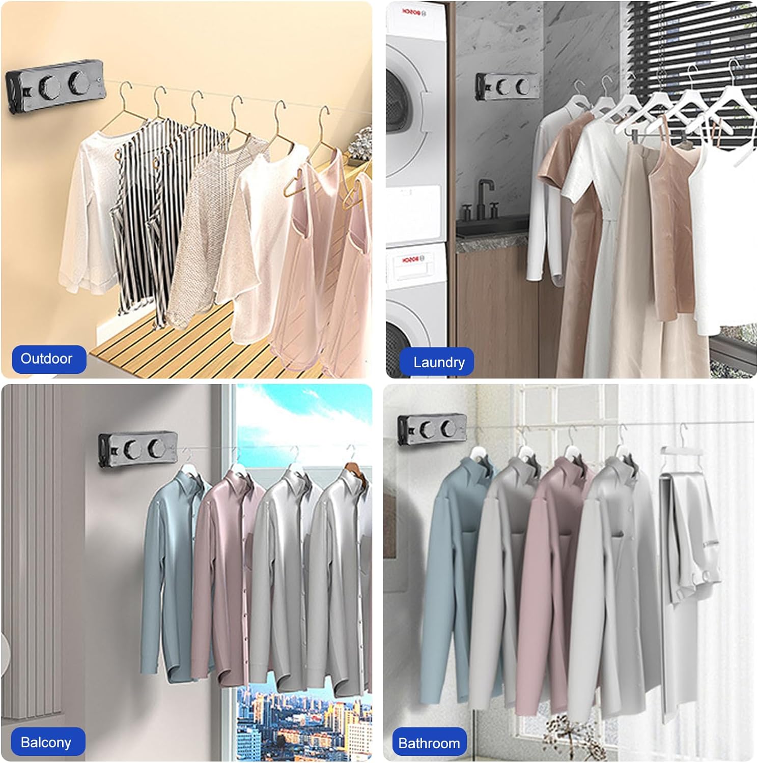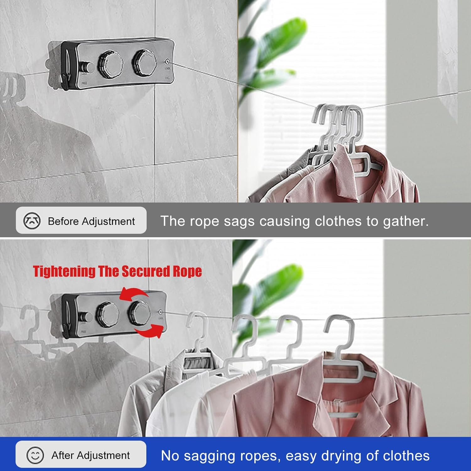 - 【Praktisch Wäscheleine Ausziehbar】Jede Leine lässt sich einzeln ausziehen und spannen. Jede Wäscheleine kann in verschiedene Richtungen gedehnt werden. Die Wäschetrocknungsleine ist einziehbar, ziehen Sie sie aus, wenn sie zum Trocknen hängt,