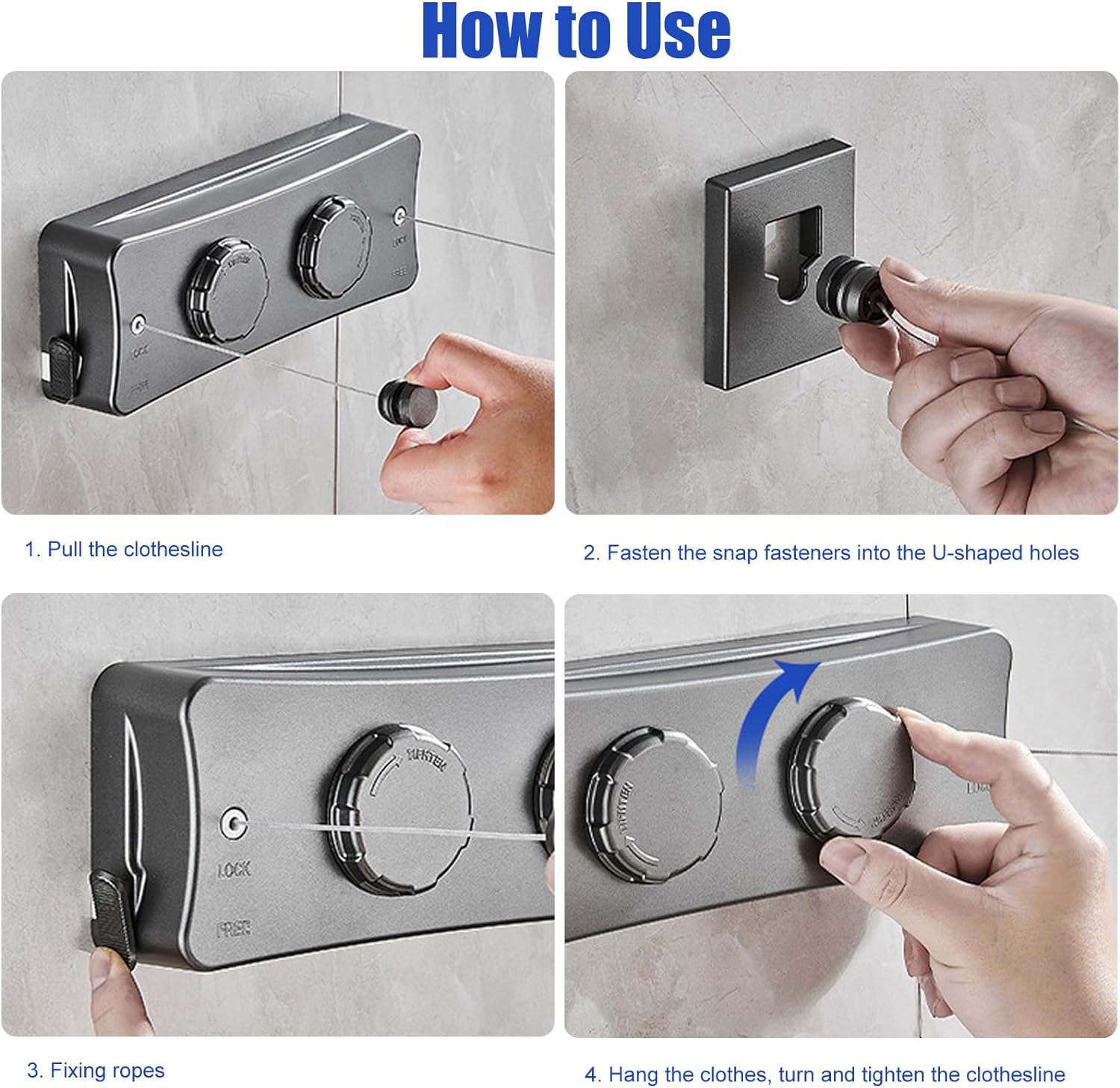 - 【Einfache Handhabung】Die wäscheleine ausziehbar für balkon wird einfach an der Wand befestigt, auf die gewünschte Länge ausgezogen und am anderen Ende mit dem beiliegenden Schraubhaken fixiert. Der manuelle Drehknopf kann die Wäscheleine so