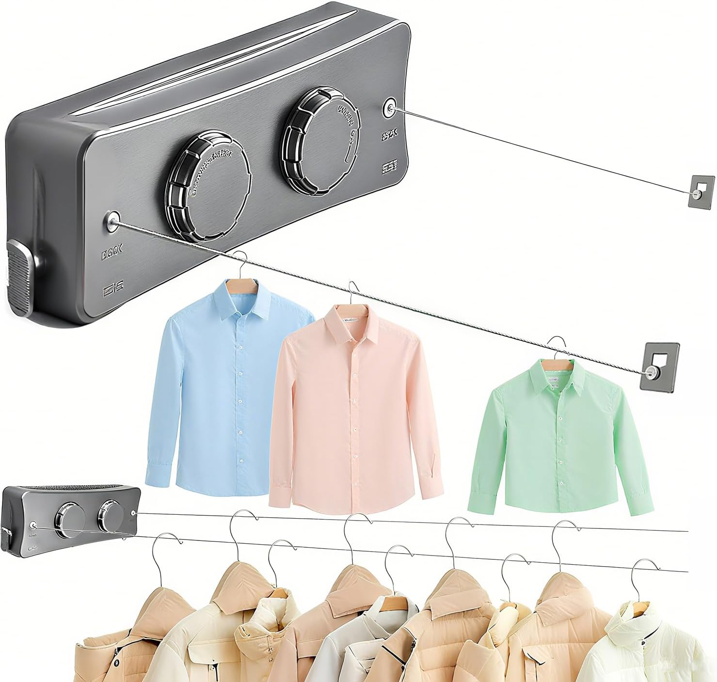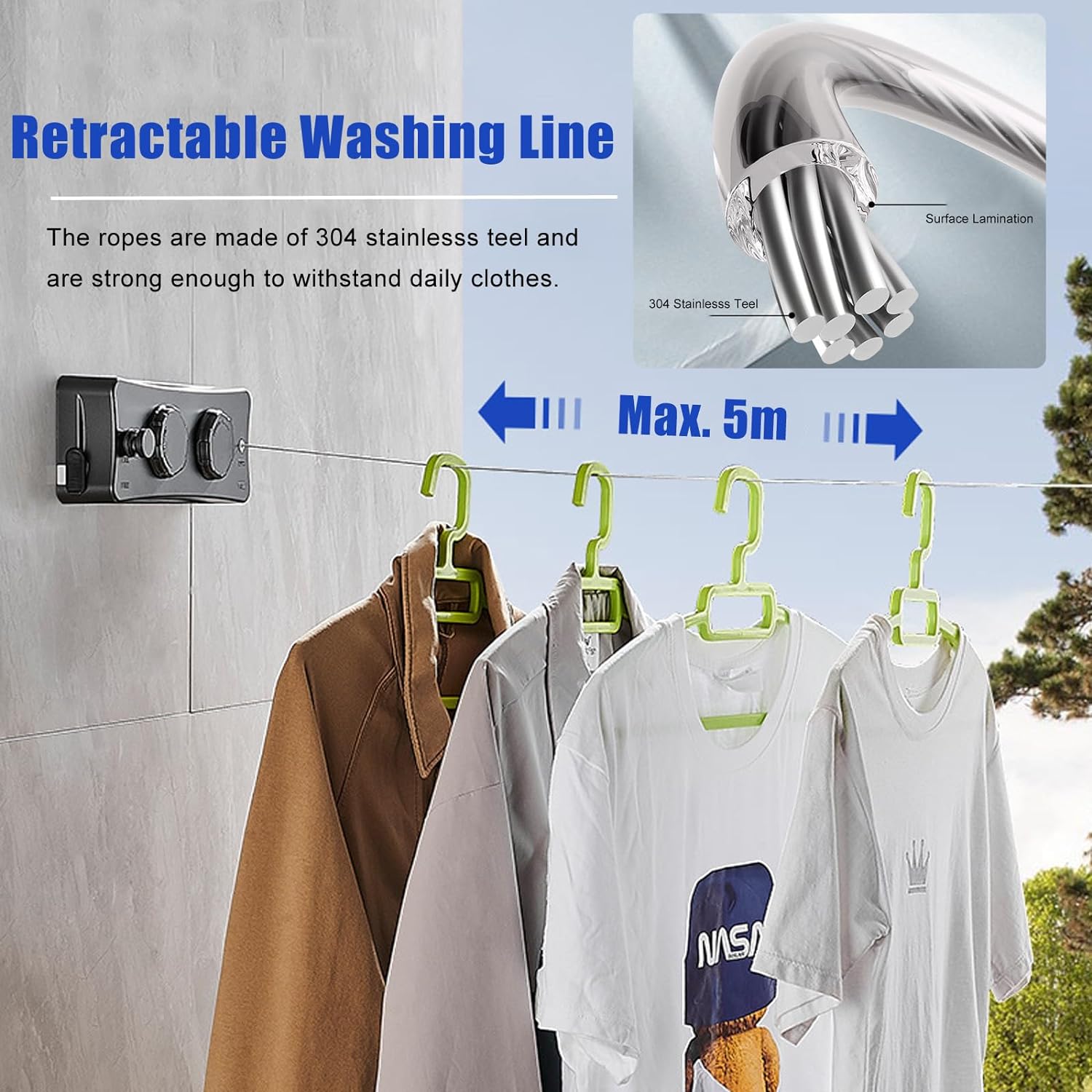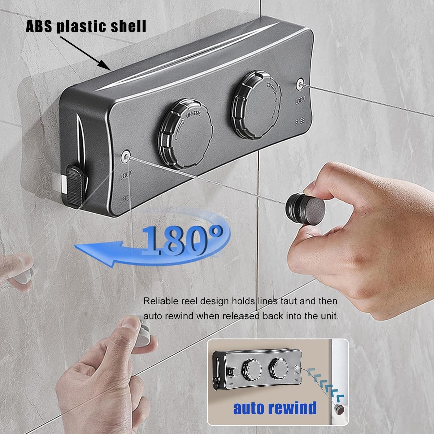 - 【Starke Tragfähigkeit】Unsere einziehbare wäscheleine verwendet ein hochwertiges drahtseil aus ddelstahl 304, Insgesamt bietet die wäscheleine ausziehbar mit 2 mal 5 Meter langen Leinen maximal 10 Meter Trockenlänge, max tragen 20kg Belastung, Es