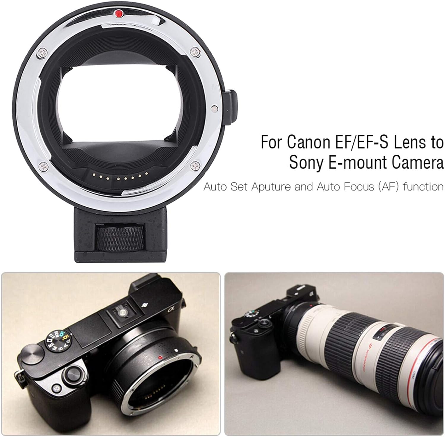 - Bringt das Canon EF/EF-S-Objektiv an der Sony E-Mount-Kamera an.