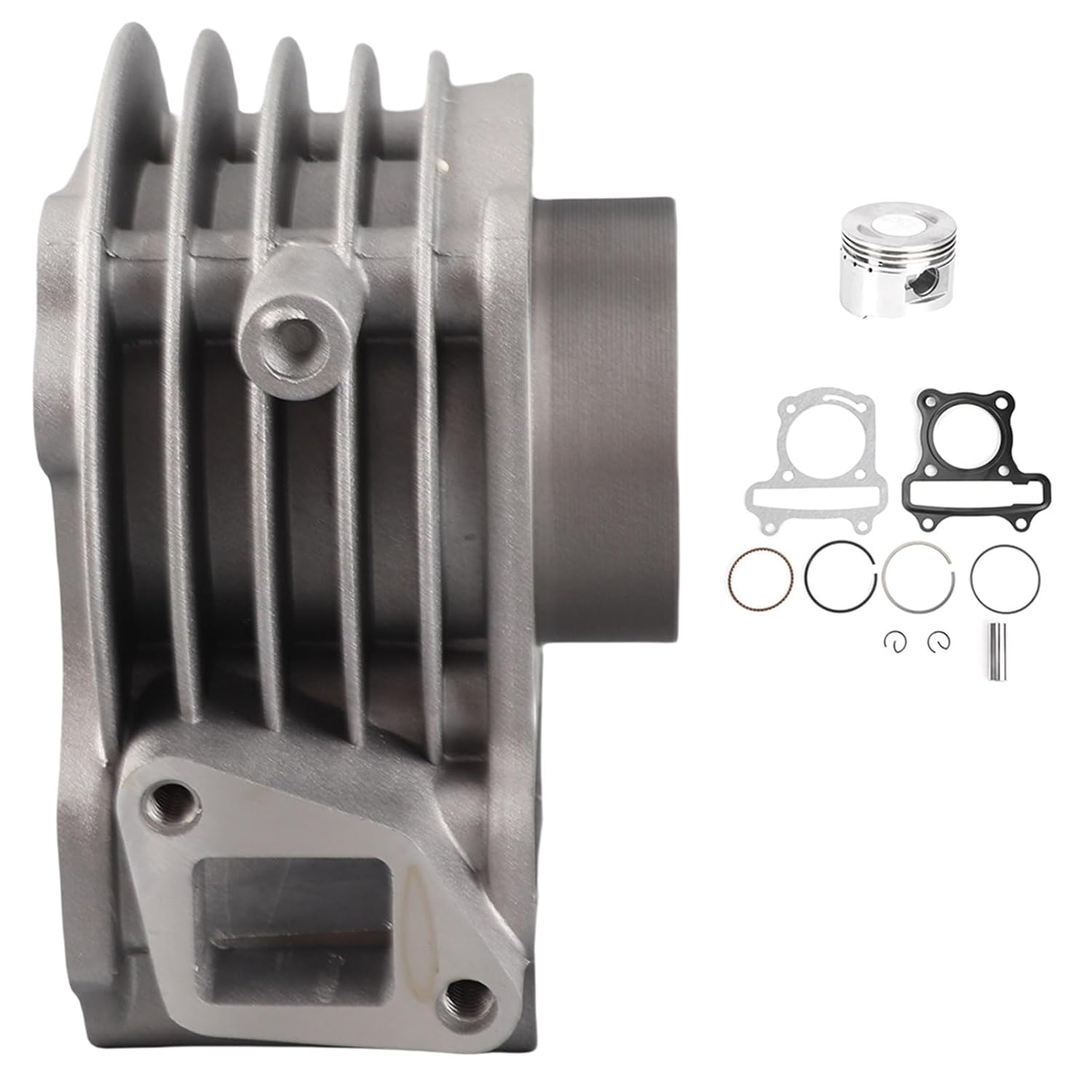 - Dieses Kit enthält Zylinder, Kolben, Ringe, Kolbenbolzen, Sicherungsringe, Kopfdichtung und Basisdichtung.