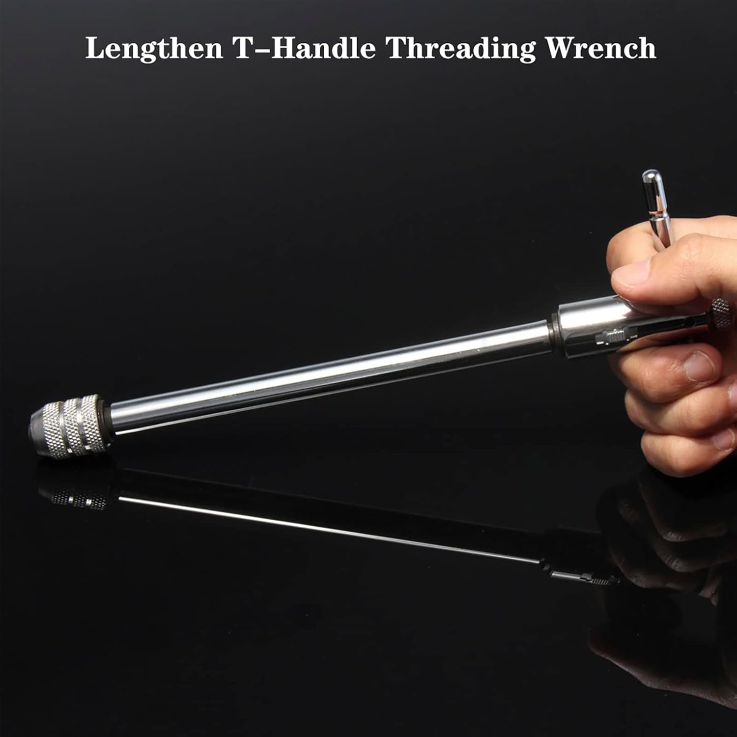 • 【Gewindeschneider Halter】- Das T-förmige Design erleichtert das Halten und Bedienen, glatte Beschichtungsoberfläche, bequemes Halten und einfache Handhabung mit einer Hand. Mit abnehmbarem Aided Pole Tap Wrench Griff kann zur bequemen Position auf