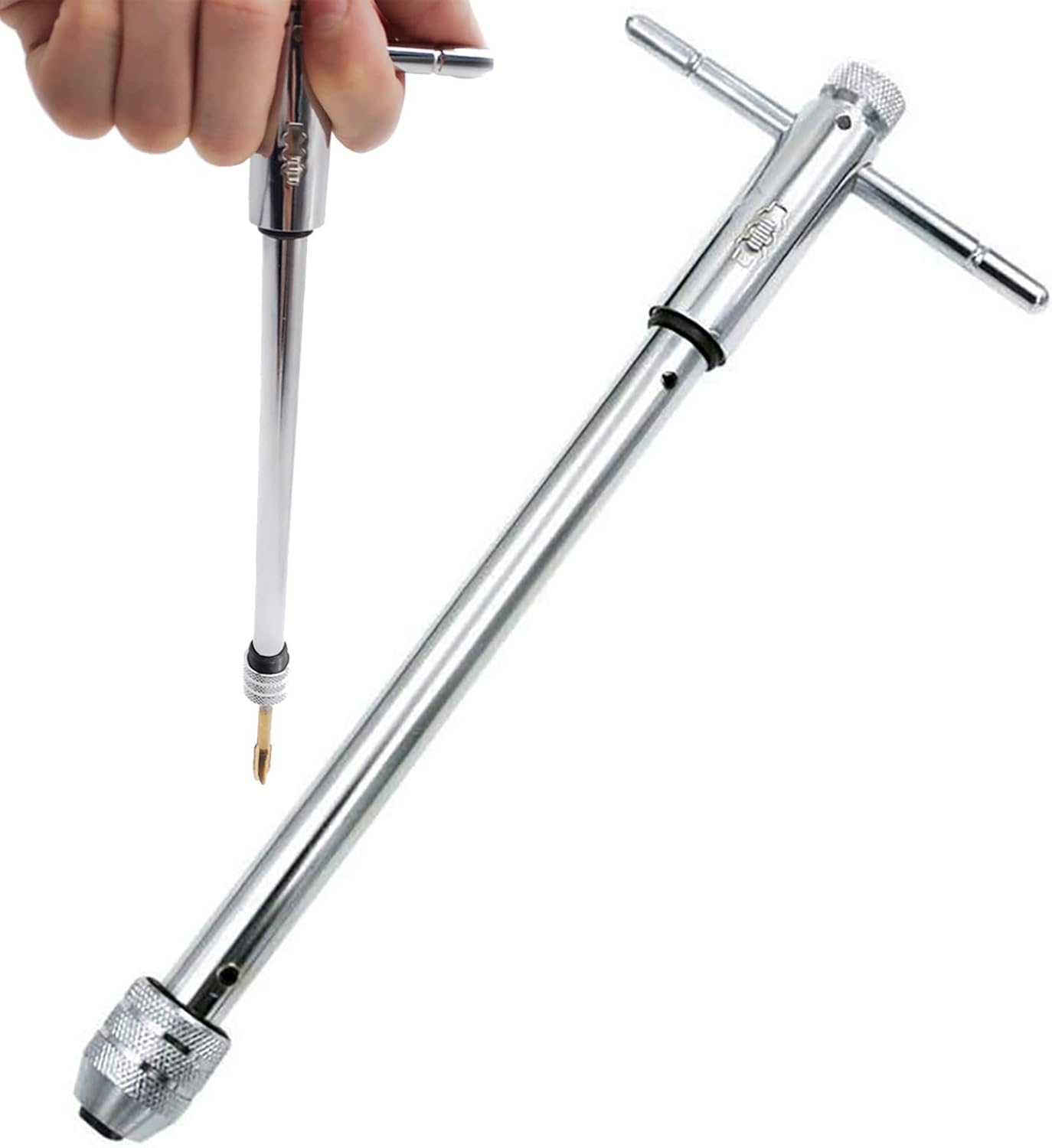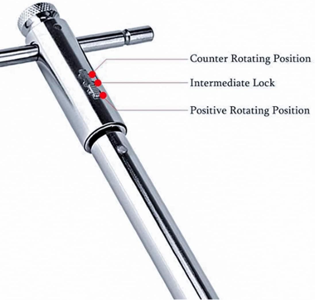 • 【Material】- Der Ratschenschlüssel mit T-Griff ist aus hochwertigem legiertem Stahl geschmiedet und verchromt, was ihn sehr widerstandsfähig gegen Rost macht. Das Stahlmaterial stellt sicher, dass der Hochleistungs-Gewindeschneidfutterschlüssel
