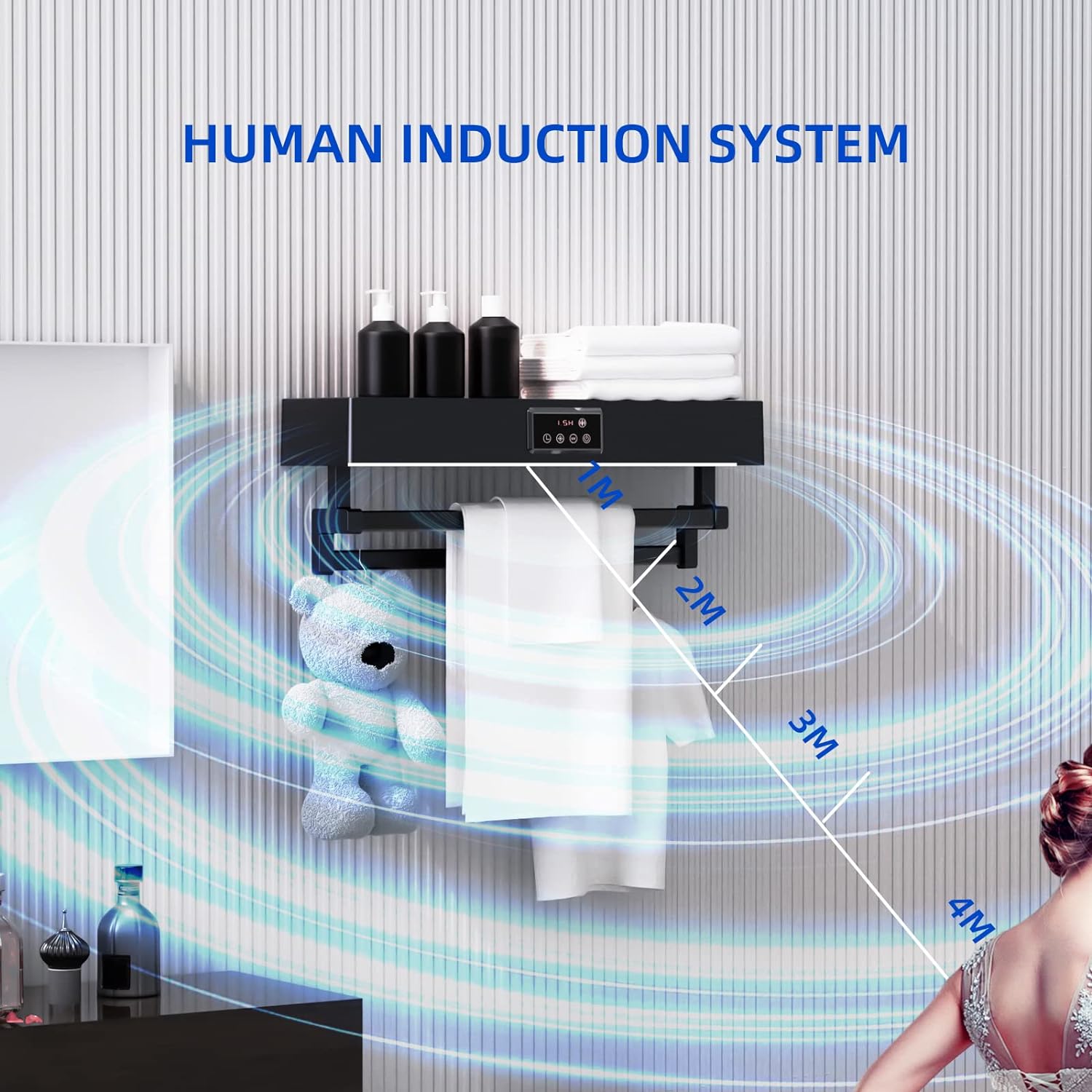 • Sicherheit Nutzen:Smart menschliches sensorsystem,wenn der Abstand weniger als 4 Meter ist, wird der Handtuchhalter automatisch ausgeschaltet, wenn mehr als 4 Meter, wird es in der Lage sein, zu arbeiten, schützen Sie Ihre Sicherheit, während Sie das Produkt; Das Produkt hat auch eine Reihe von Timing-Funktionen, die nach Ihren Bedürfnissen angepasst werden können;