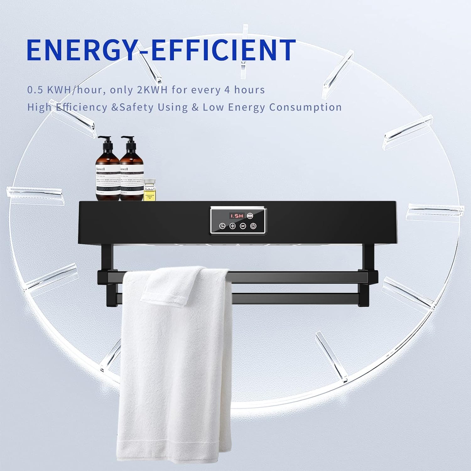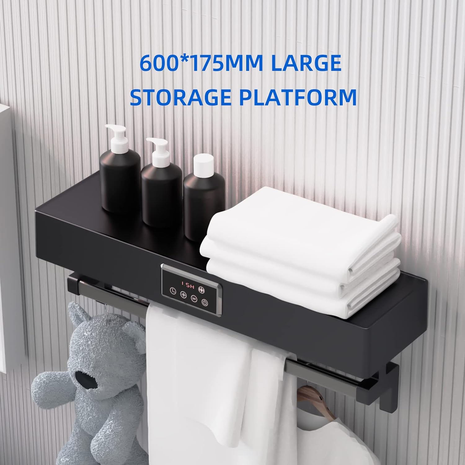• Gesundes, intelligentes und fortschrittliches Leben:QL Eleganter und schöner elektrischer Handtuchhalter mit einfachem Touchscreen, leicht zu bedienen, der Halter kann als Ablage für andere Badartikel verwendet werden.