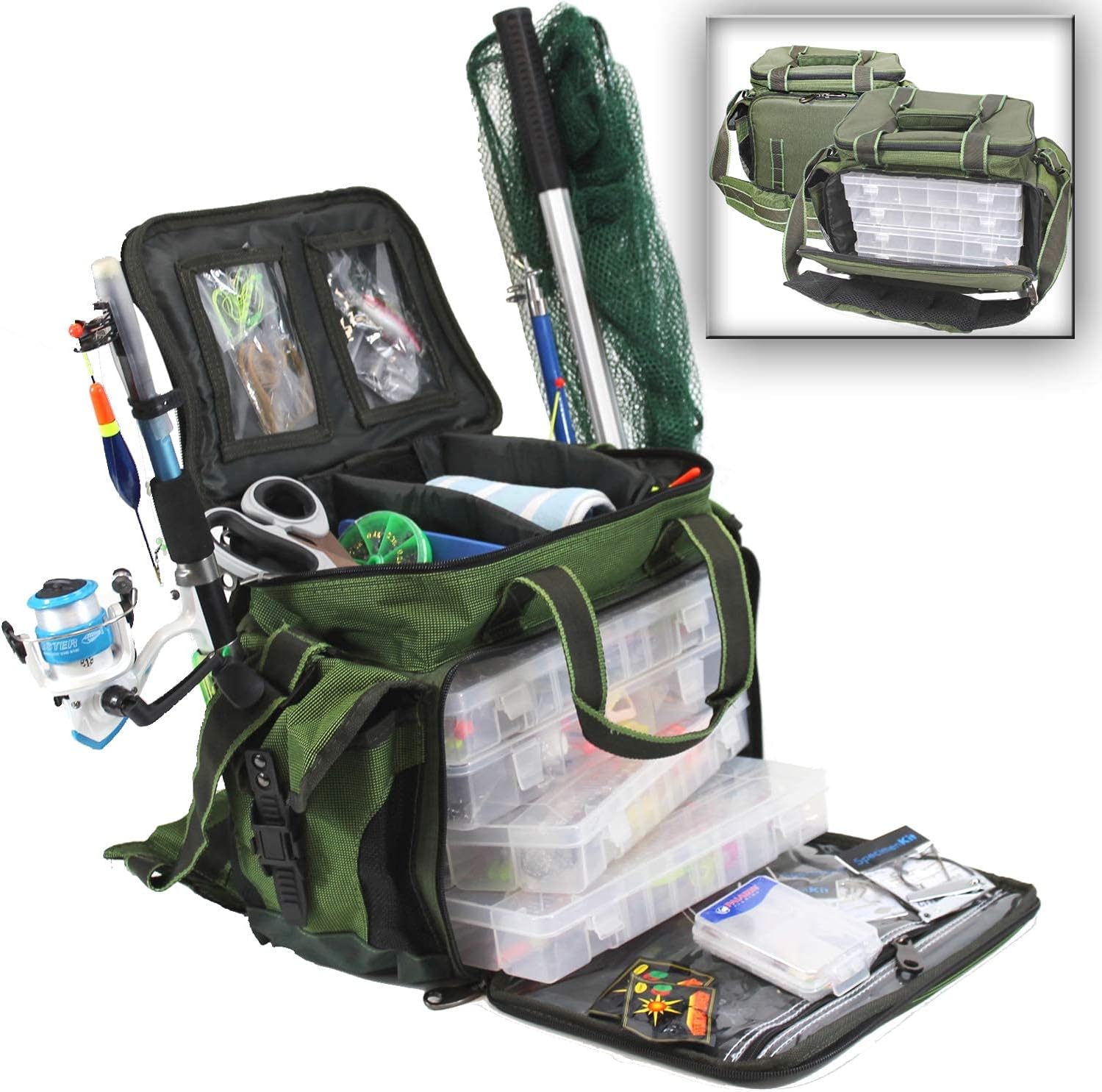 - Gesamtgrösse HxBxT ca. 32x42x21 cm | Hauptfachgrösse HxBxT ca. 25x29x19,5 cm / Grösse der Tackle Boxen HxBxT ca. 4,5x27,5x18 cm