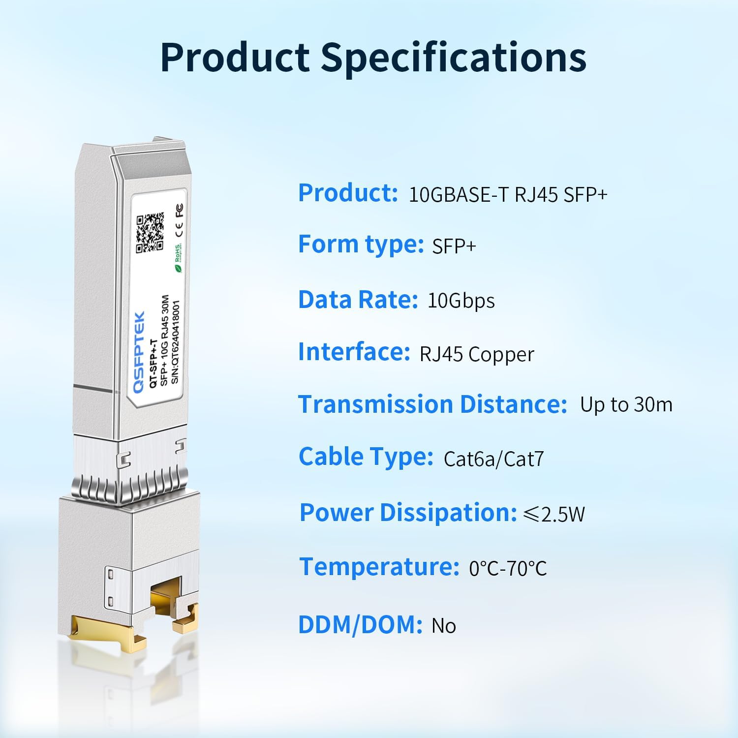 - 【Vielfältige Anwendungen】Weit verbreitet in Glasfaser-Switches, Routern, Netzwerkkarten, Servern oder anderen Glasfasergeräten mit 10Gbit SFP+ RJ45 Ports. Eine Verlustleistung von weniger als 2,5 W und eine wärmeleitende Dichtung bieten eine