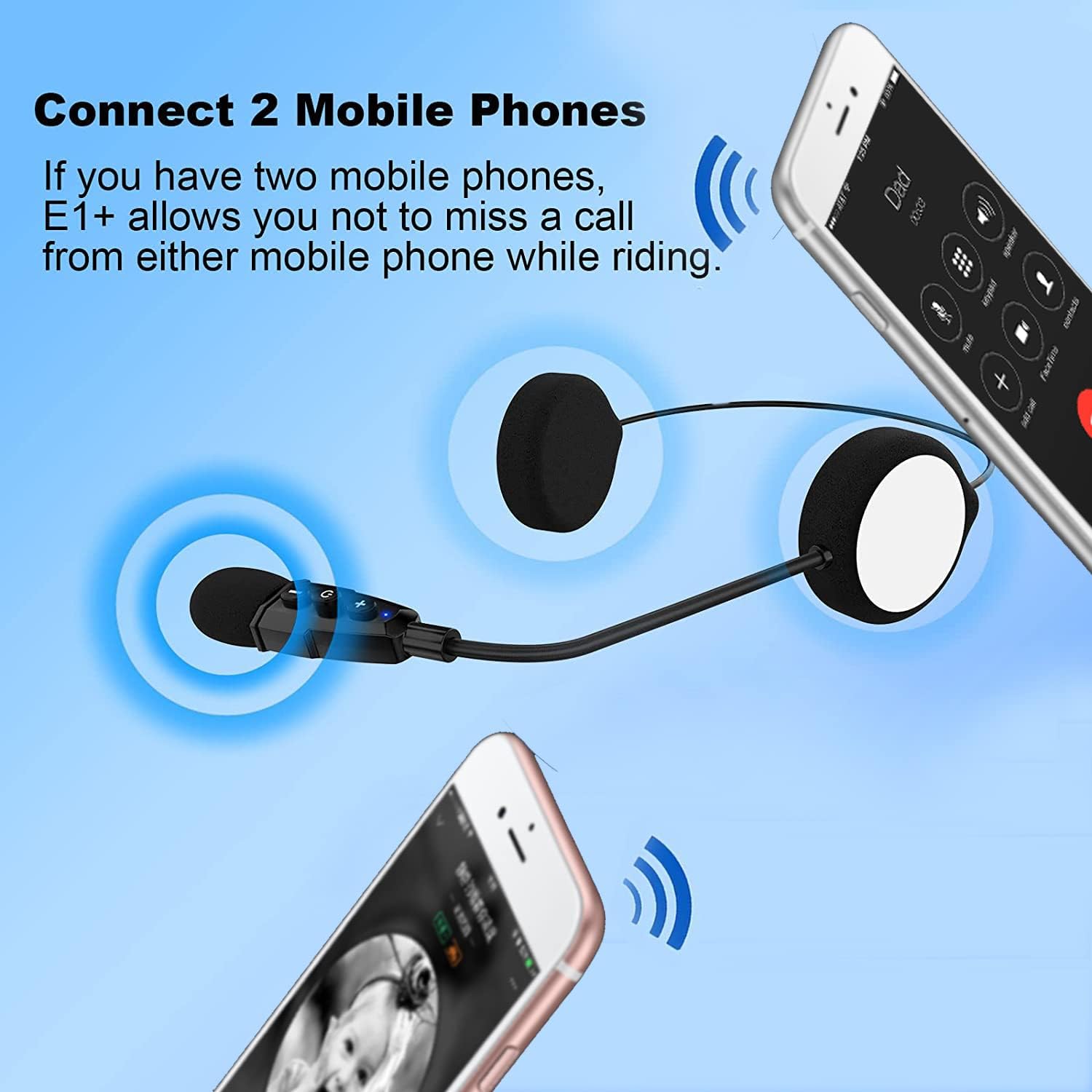 - ★Verbinden Sie 2 Handys: Das E1+ Motorrad-Headset kann 2 Mobiltelefone über Bluetooth verbinden, unterstützt automatische Anrufannahme, Sprachwahl, Ablehnen / Beenden / Wahlwiederholung, Abspielen / Umschalten von Musik und Anpassen der Lautstärke,