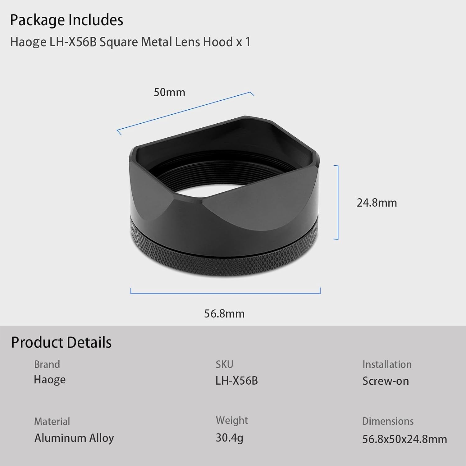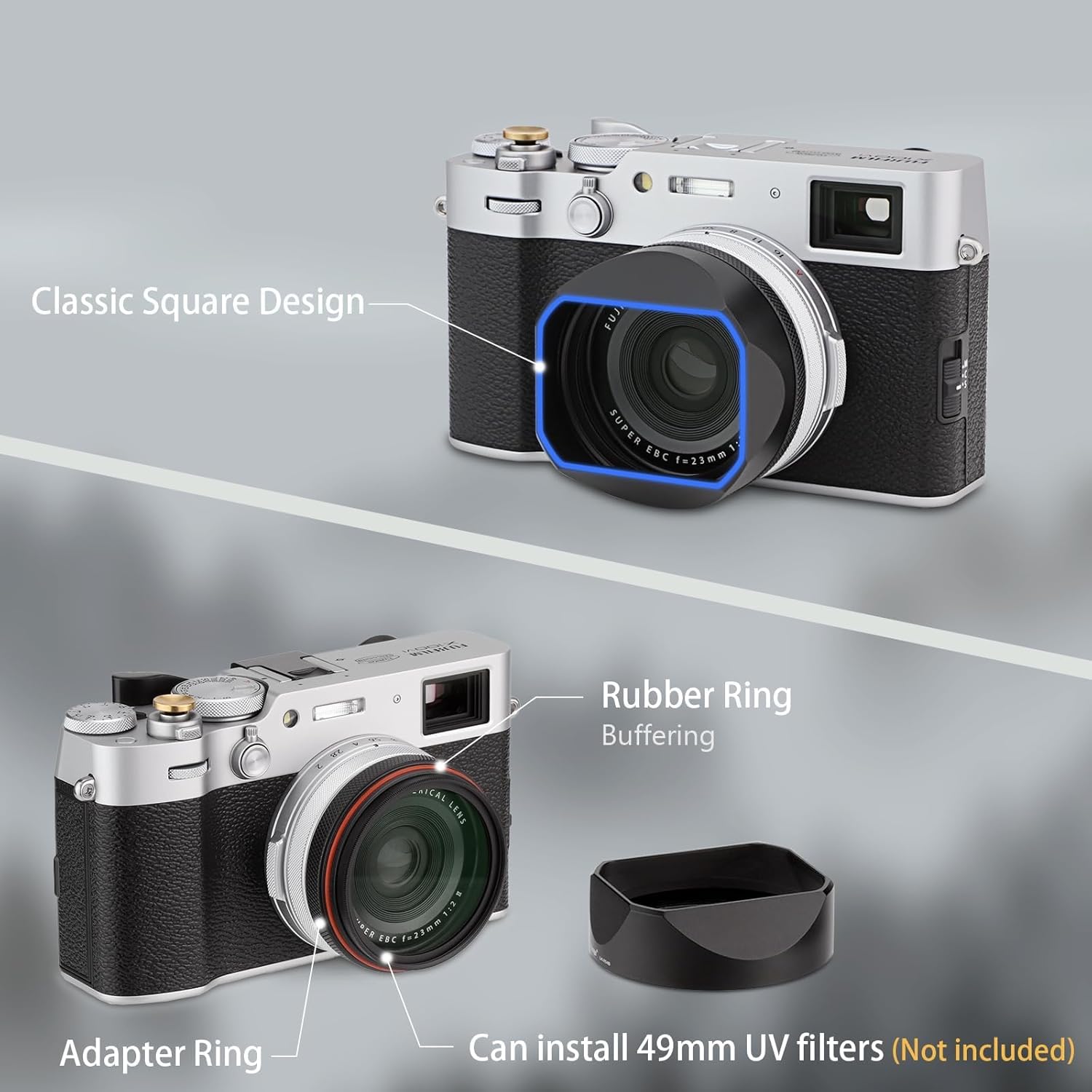- Haoge Quadratische Metall-Gegenlichtblende speziell für Fujifilm X100VI Kamera.
