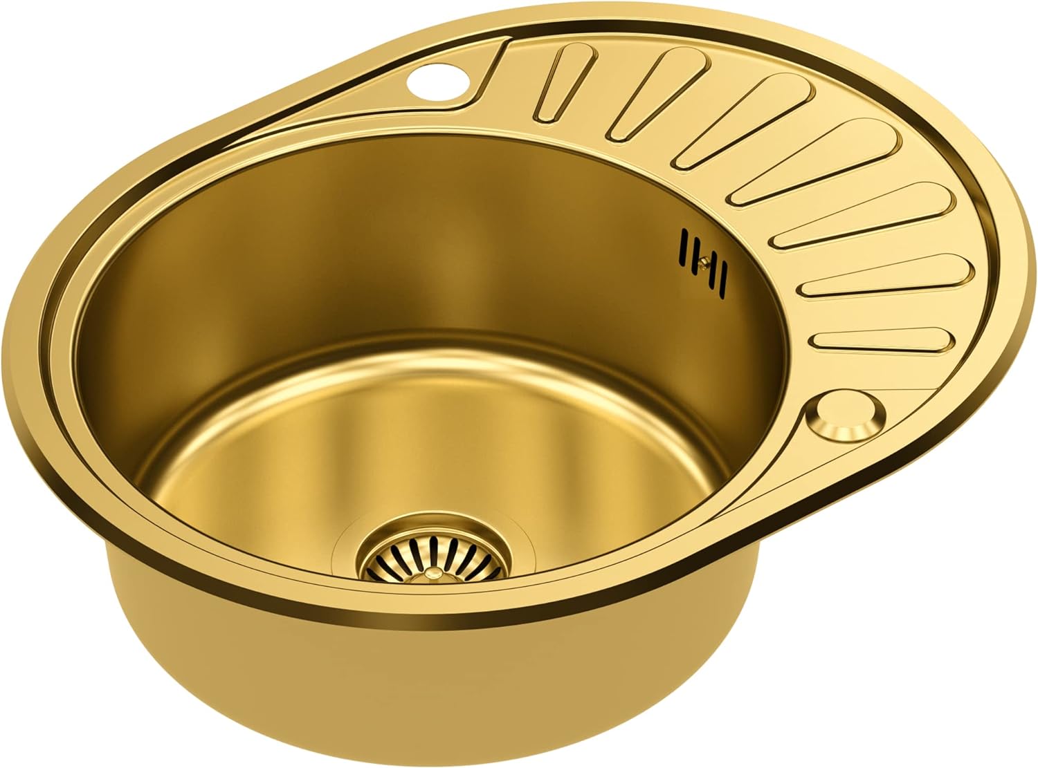 - Die Spüle ist mit einem SteelQ-Edelstahlablauf in PVD-Technologie in einer Farbe ausgestattet, die der Farbe der Spüle entspricht.