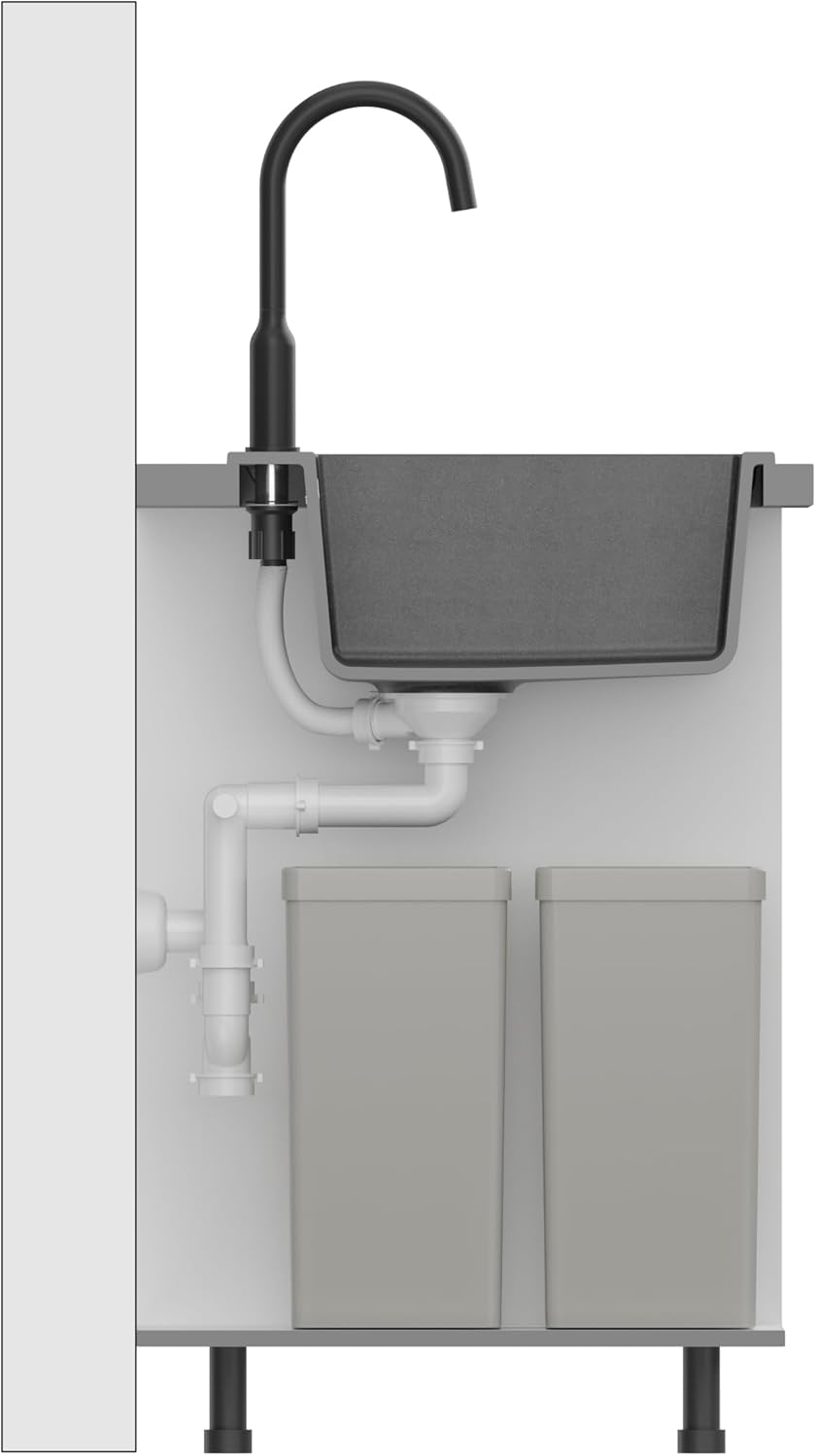 - Der Ablauf ist farblich auf die anderen Elemente abgestimmt, was dem Produkt ein elegantes Aussehen verleiht, und der Siphon bietet die Möglichkeit, einen Geschirrspüler oder eine Waschmaschine anzuschliessen.