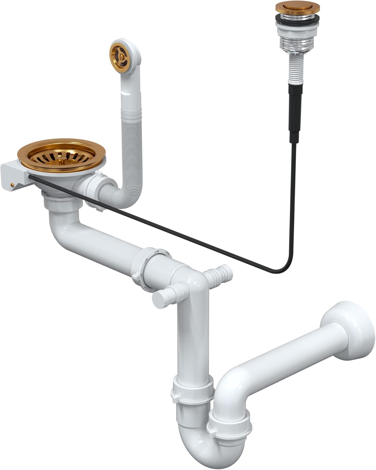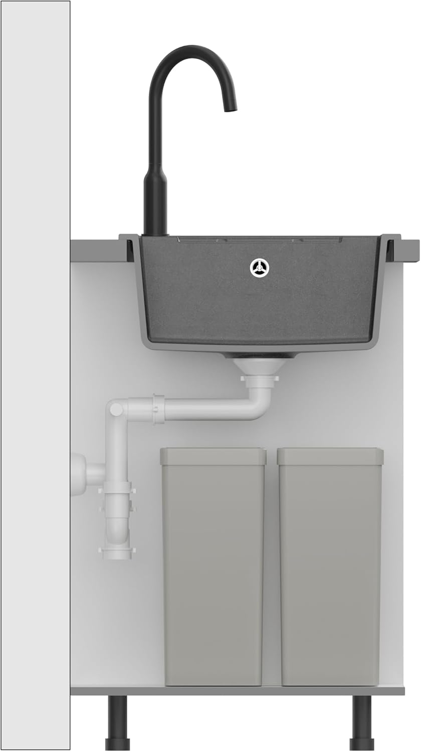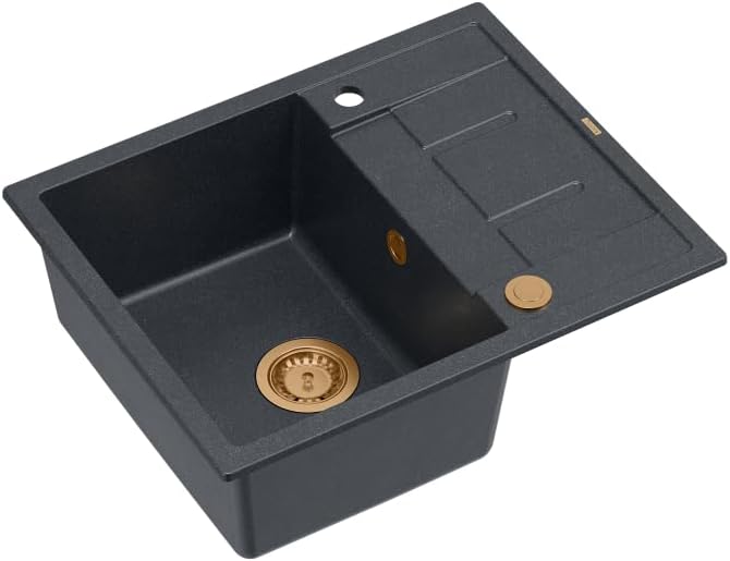 - Die Spüle ist mit einem farblich auf die anderen Elemente abgestimmten SteelQ-Ablauf aus Edelstahl ausgestattet, der dem Produkt ein elegantes Aussehen verleiht, sowie mit einem Siphon mit Anschlussmöglichkeit für einen Geschirrspüler oder eine