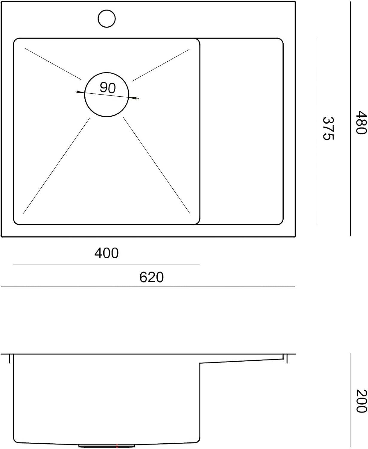 QUADRON | RUSSEL 116 | Einbeckenspüle | Masse: 62 x 48 x 20 cm | Passt in eine Schrankbreite: 45 cm