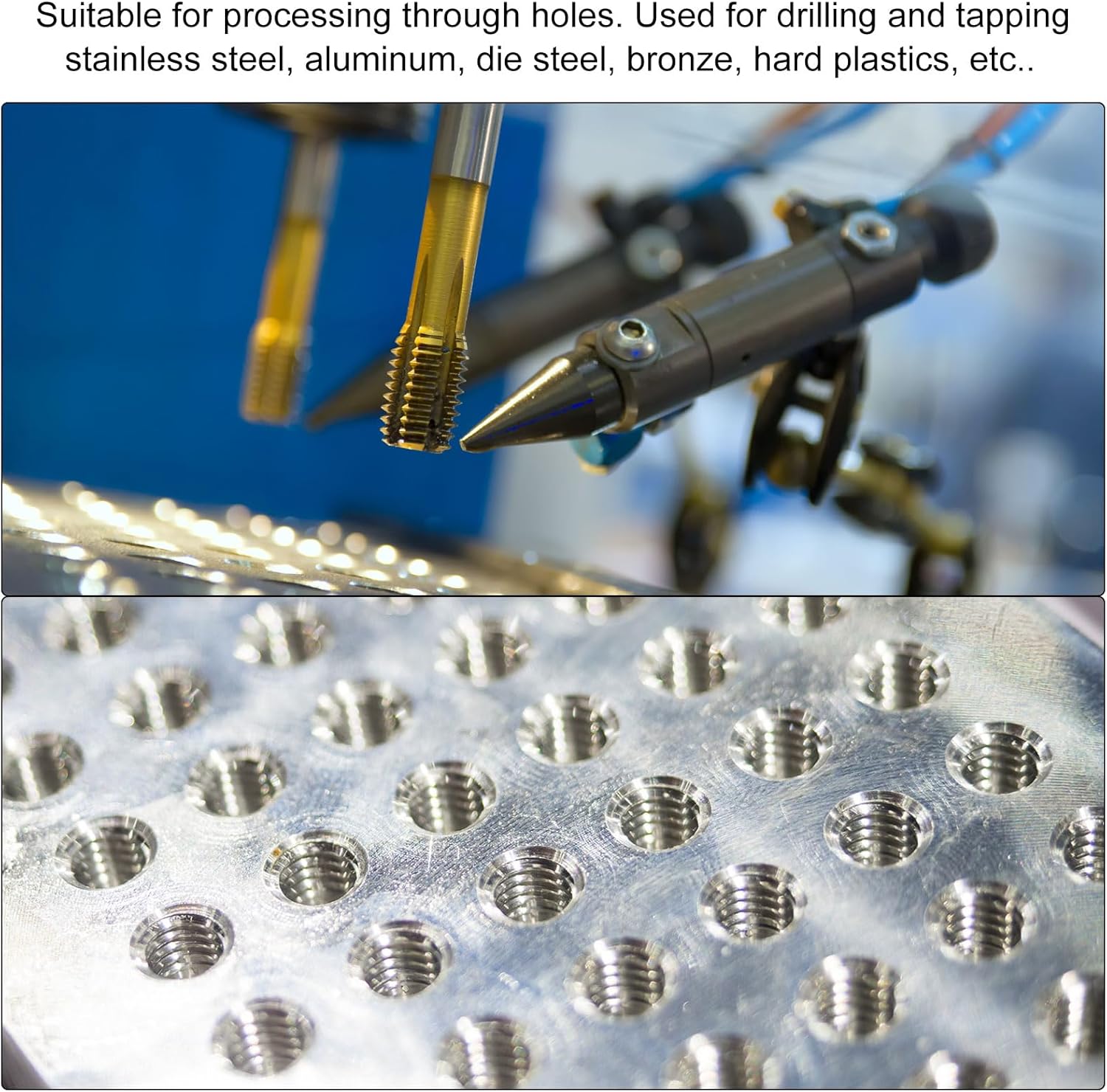 - Breite Anwendung: Geeignet für die Bearbeitung von Durchgangslöchern. Verwendet zum Bohren und Gewindeschneiden von Edelstahl, Aluminium, Werkzeugstahl, Bronze, Hartkunststoffen usw. Empfohlene Vorschubgeschwindigkeit: allgemeiner Stahl: 6-15m/min;