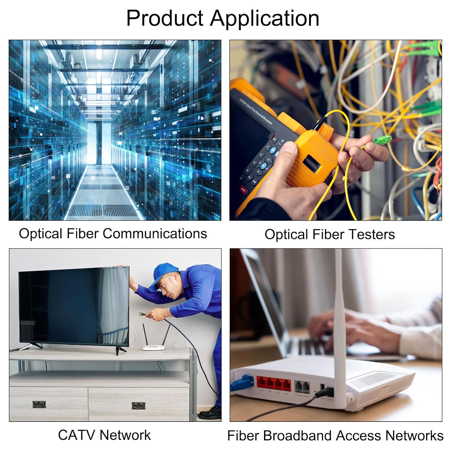 - Glasfaser-Schnellverbinder werden verwendet, um Glasfasern mit Glasfasern oder Glasfaserpigtailen zu verbinden. Sie dienen dazu, Verbindungen in optischen Übertragungssystemen, CATV-Netzwerken, Telekommunikationsnetzen, LAN usw. herzustellen.
