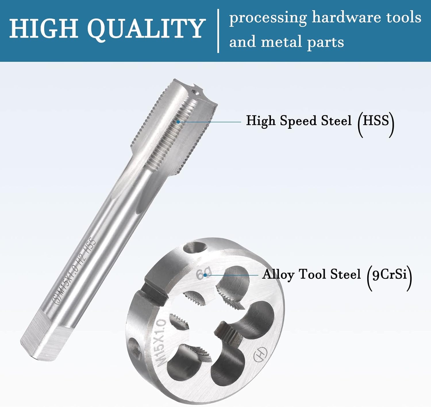 • ! Eigenschaften - M15 x 1mm Metrischer Gewindebohrer und Rundmatrize Set, 4 Flöten Schnellarbeitsstahl.