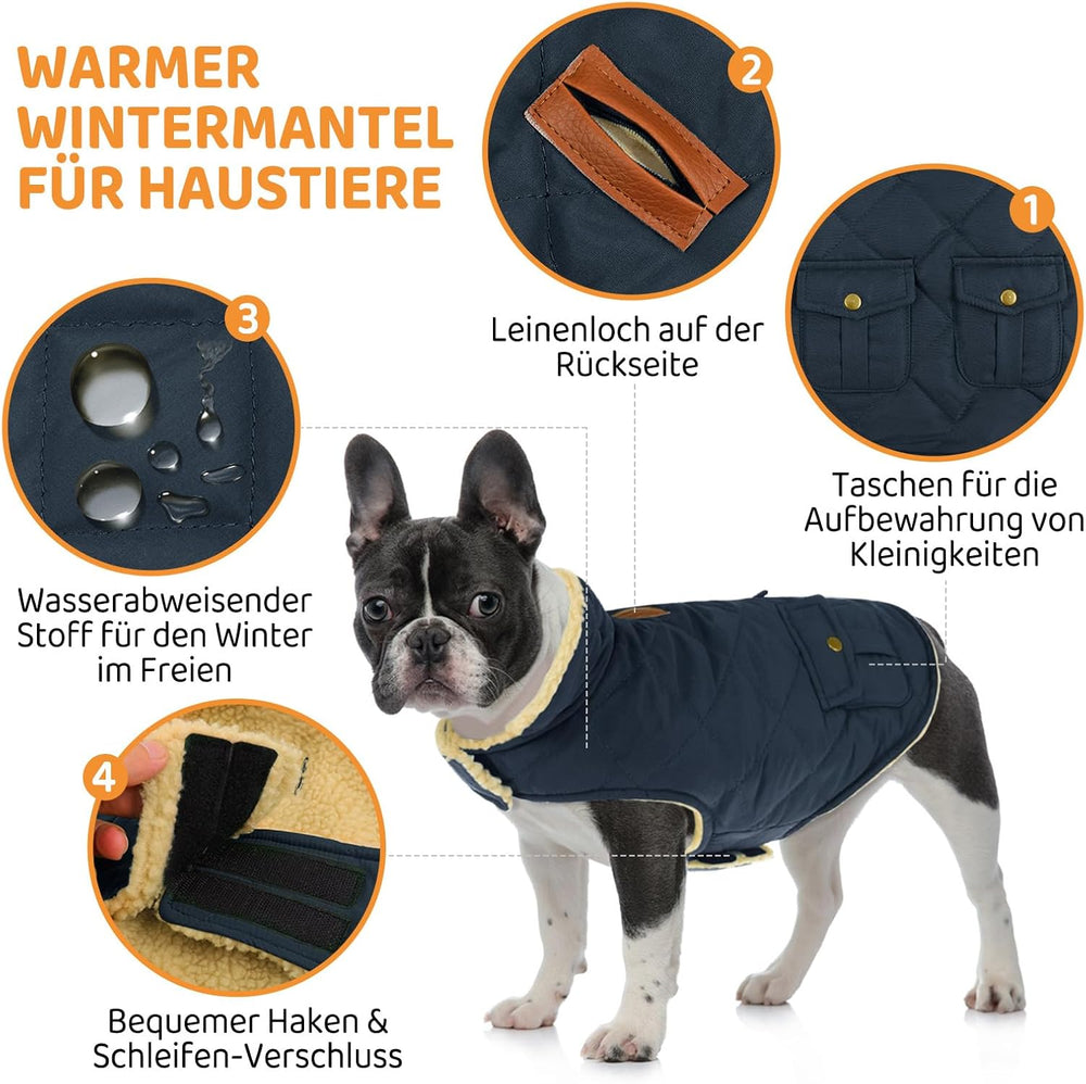 - Stilvoller Kragen & Steppentaschen: Es ist einfach, Snacks, Müllbeutel oder die Leine in den Aufbewahrungstaschen auf der Rückseite des Hundemantels zu verstauen; der schwer gefütterte Hundemantel Winter kann den kalten Wind effektiv abhalten, wenn