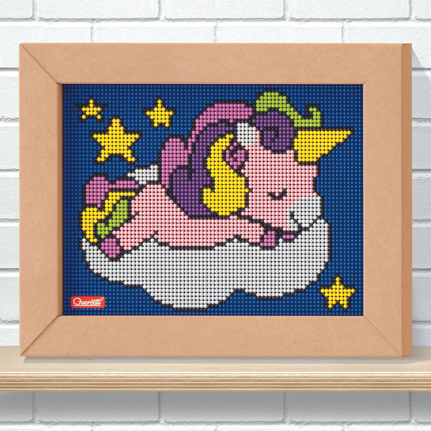 - Alle Mosaike mit Rahmen haben eine Hauptfigur. Wähle zwischen Einhorn, Panda, Axolotl oder Corgi