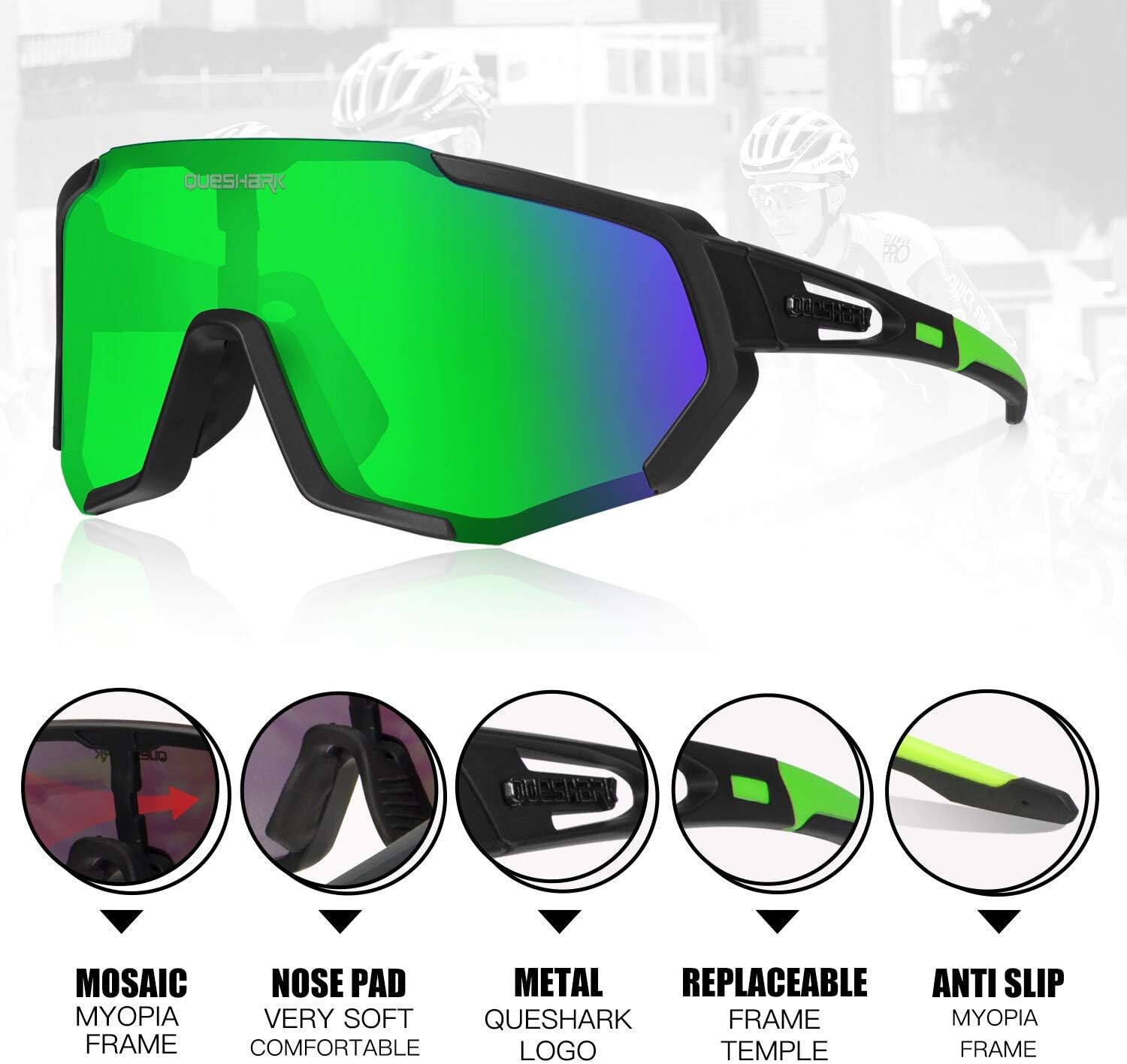 - 【Praktischer Linsenwechsel】 Die Unterscheidung anderer Sportsonnenbrillen zum Ersetzen von Linsen erfordert fast die Zersetzung der Brille. Die Queshark-Sportbrillen-Ersatzlinse kann in einem einfachen Schritt fertiggestellt werden. Nehmen Sie die