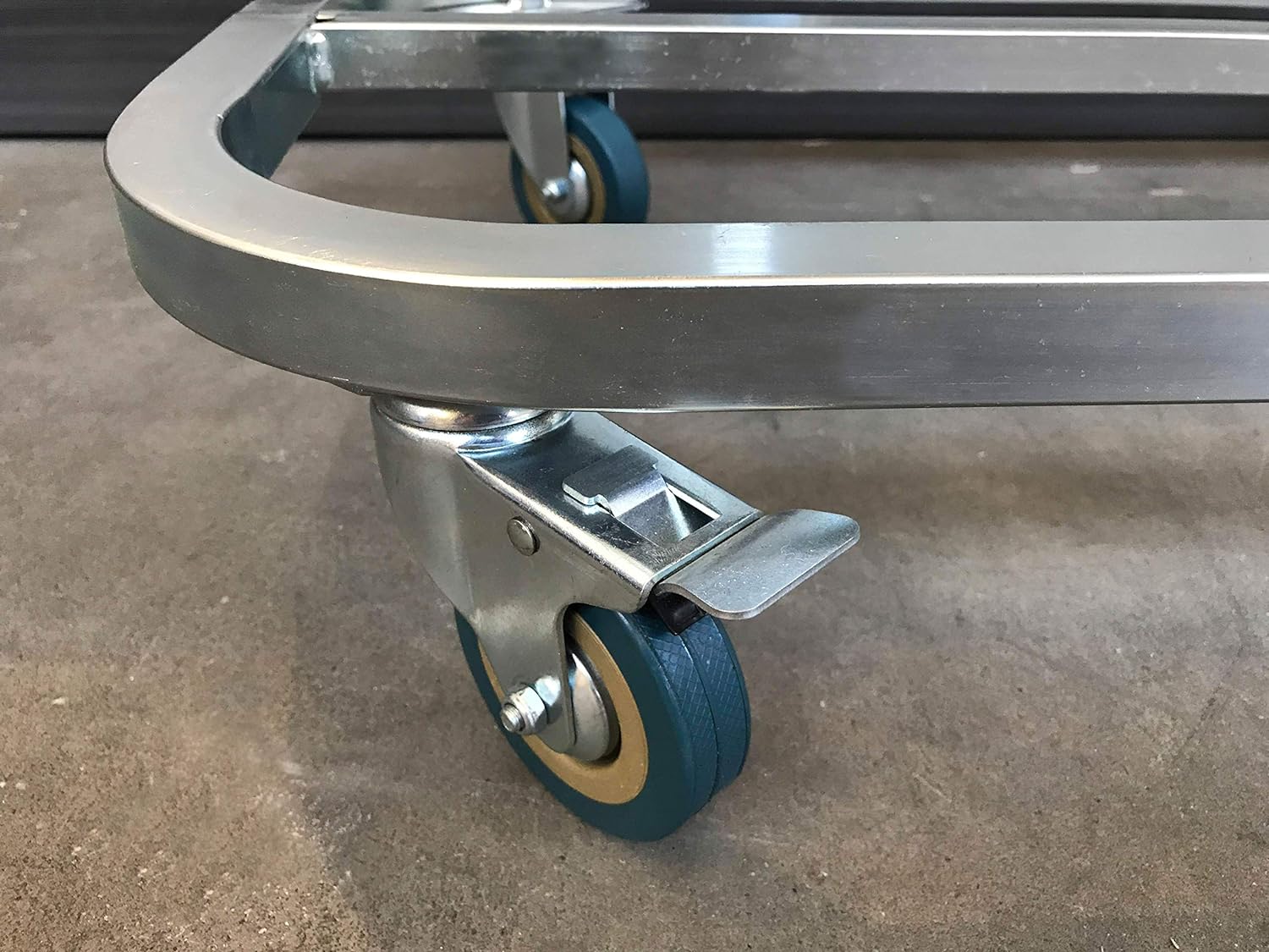 - Stabiles, komplett verzinktes Gestell, 30x30mm Vierkantrohr mit 4 Rollen. Lenkrollen drehbar um 360°, gummiert für leises Rollen.
