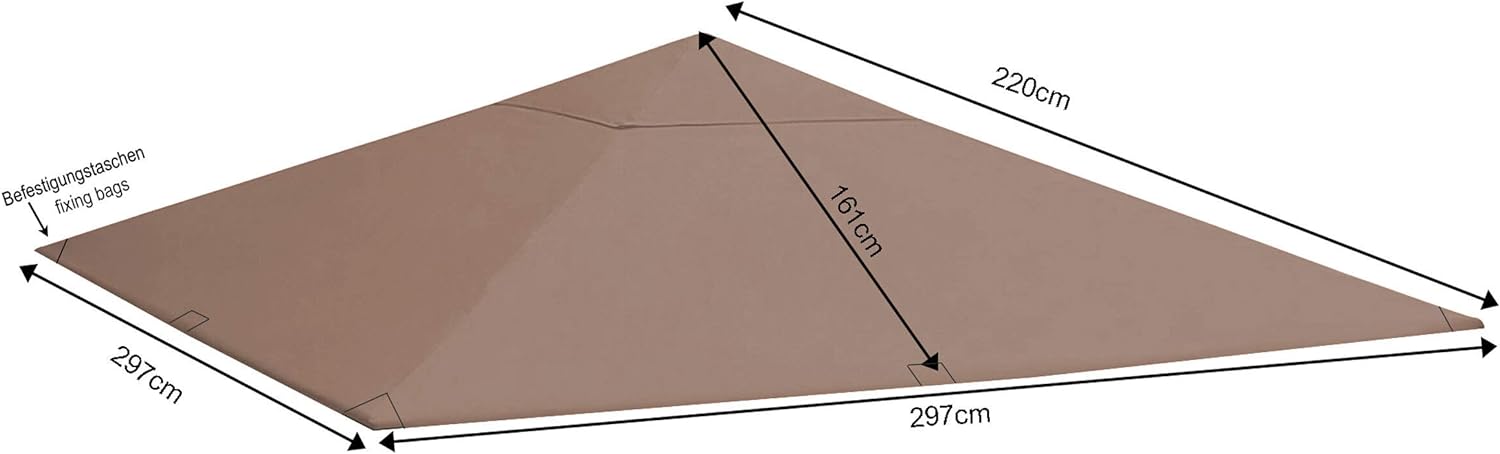 - Dachabmessung: 297 x 297 cm. Passend zu Pavillon Modellen Nizza, Karlsö und Paris von QUICK STAR