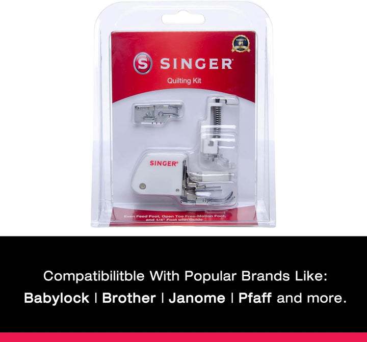 - Das Singer Quilting Nähfuss-Set enthält drei essentielle Quilt-Füsse. Das perfekte Nähfuss-Set für Anfänger und begeisterte Quilter. Das Set enthält den gleichmässigen Feed-Fuss, einen Viertel-Zoll-Fuss mit Führung und den offenen Zeh